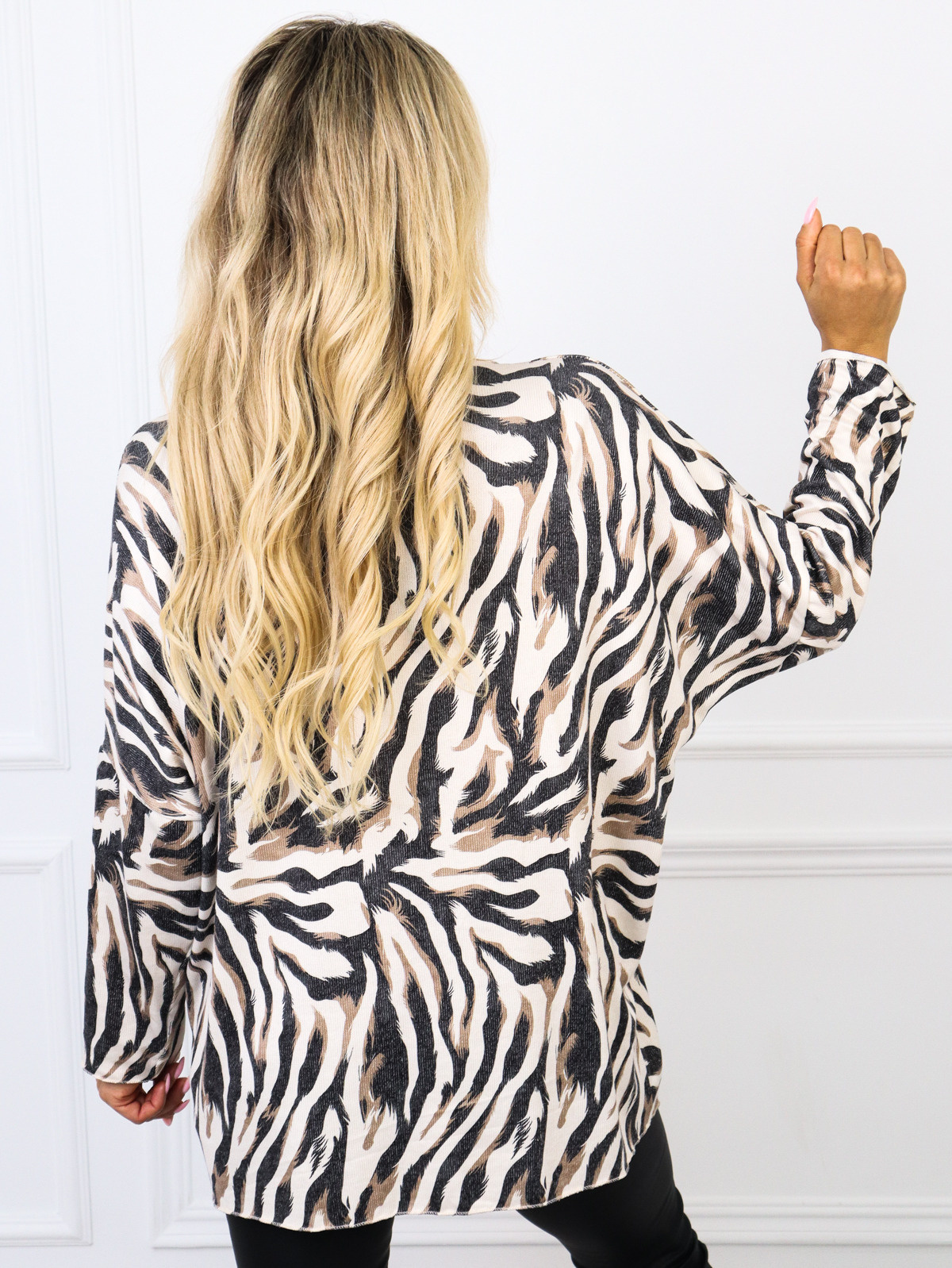 BLUZKA NIETOPERZ Z DEKOLTEM W SEREK I WZOREM W ZIELONE KWIATY