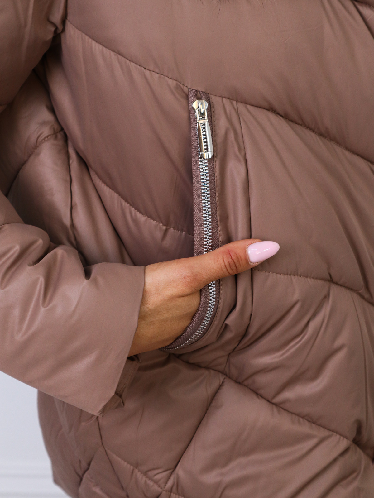 KURTKA ASYMETRYCZNA Z FUTERKIEM I KIESZENIAMI NA ZAMKI-BRĄZOWA