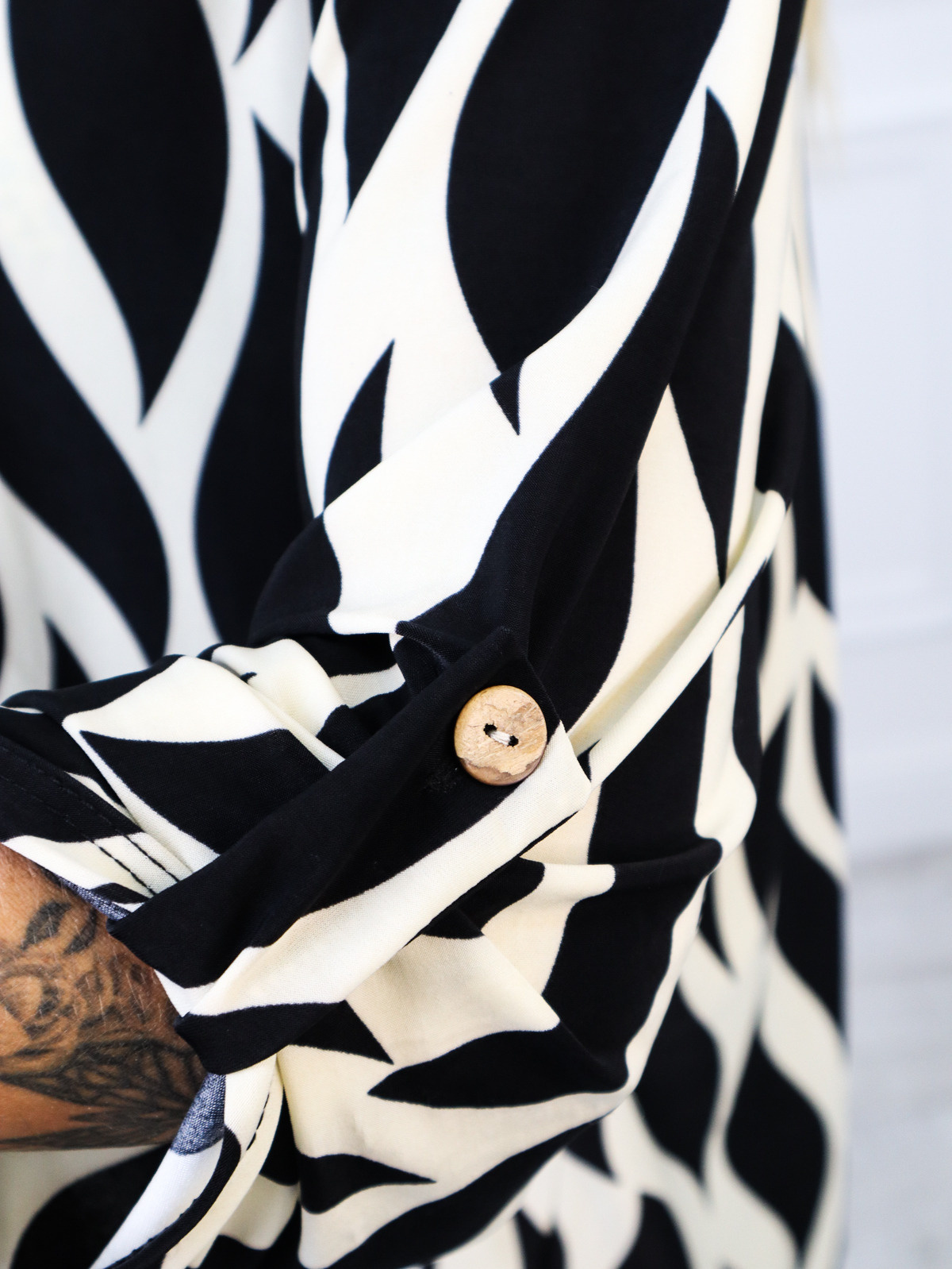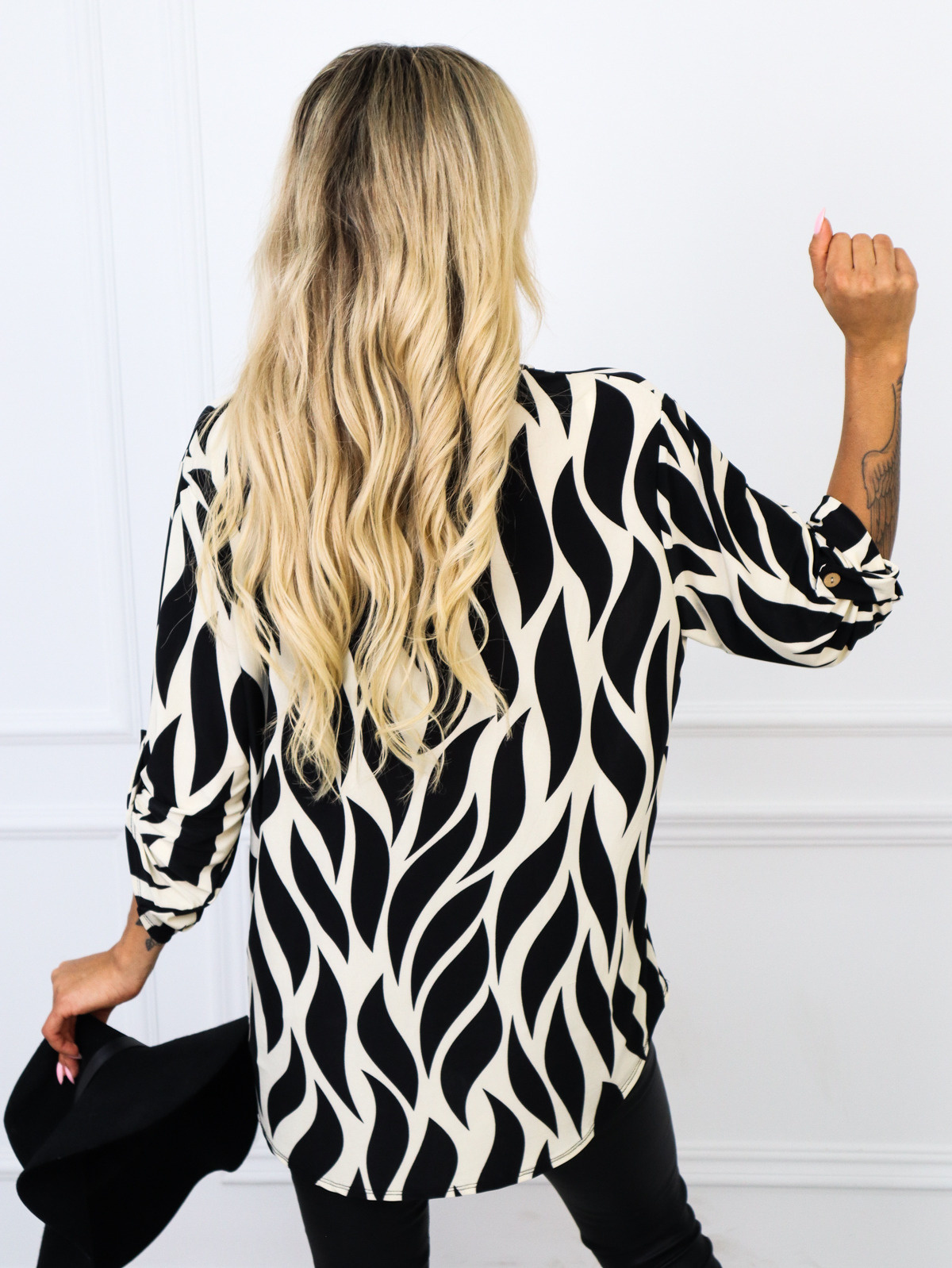 BLUZKA ONE SIZE WE WZORY DEKOLT W SEREK I RĘKAW 3/4 - BEŻOWA