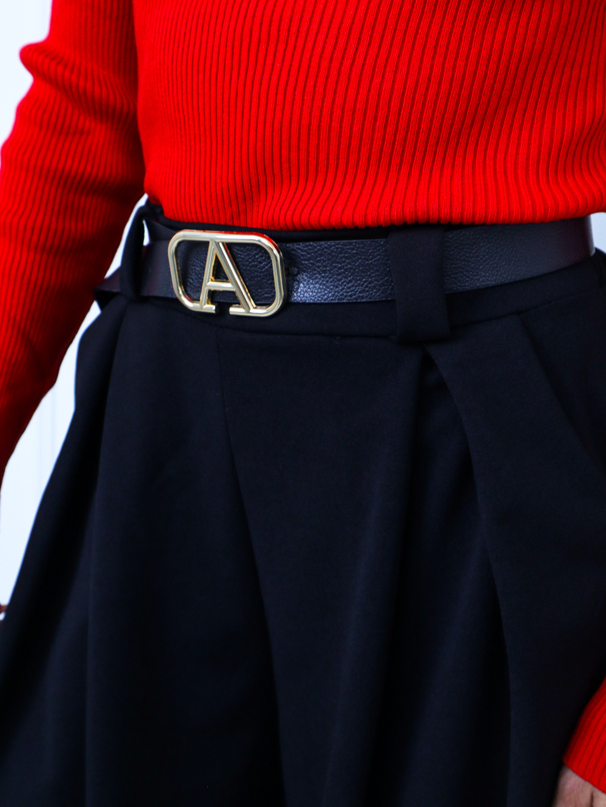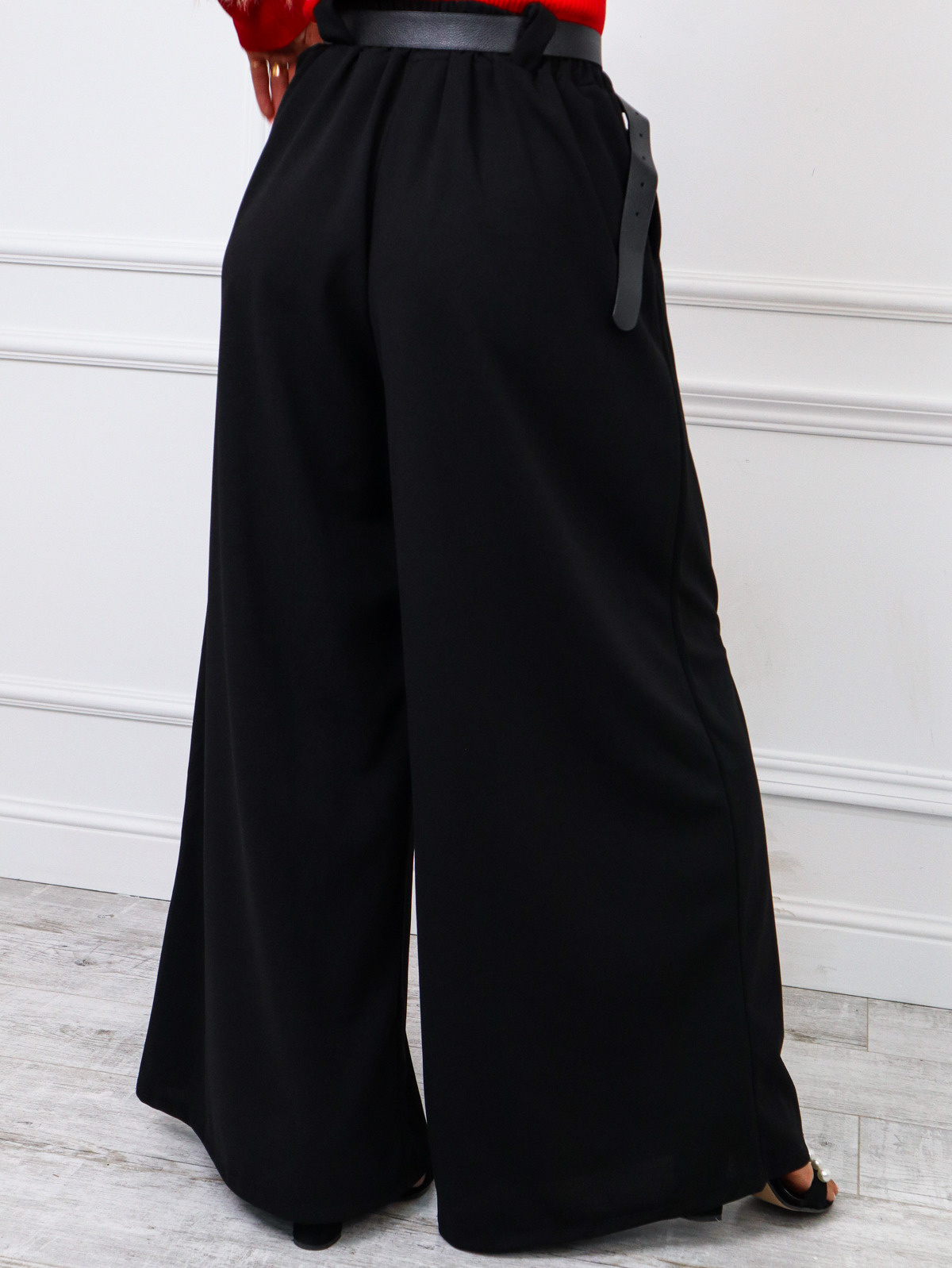 SPODNIE MATERIAŁOWE Z SZEROKIMI NOGAWKAMI+ PASEK- CZARNE