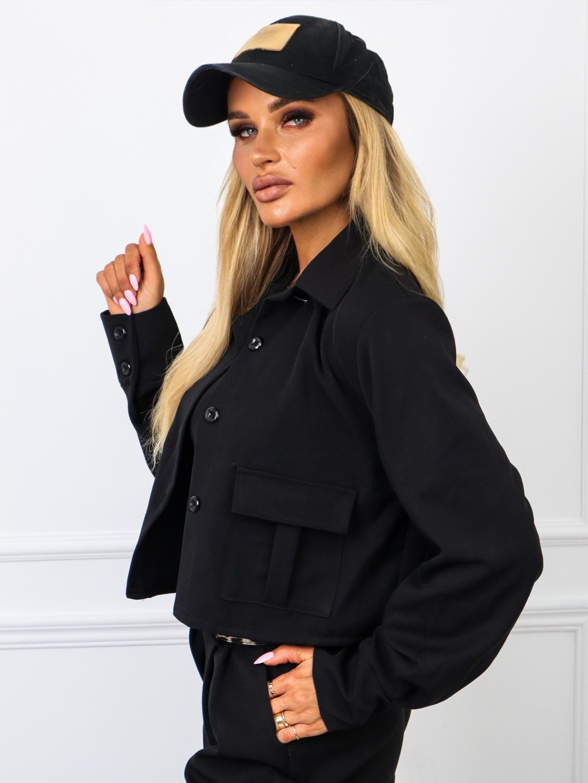 KRÓTKA MARYNARKA Z KIESZENIAMI- CZARNA