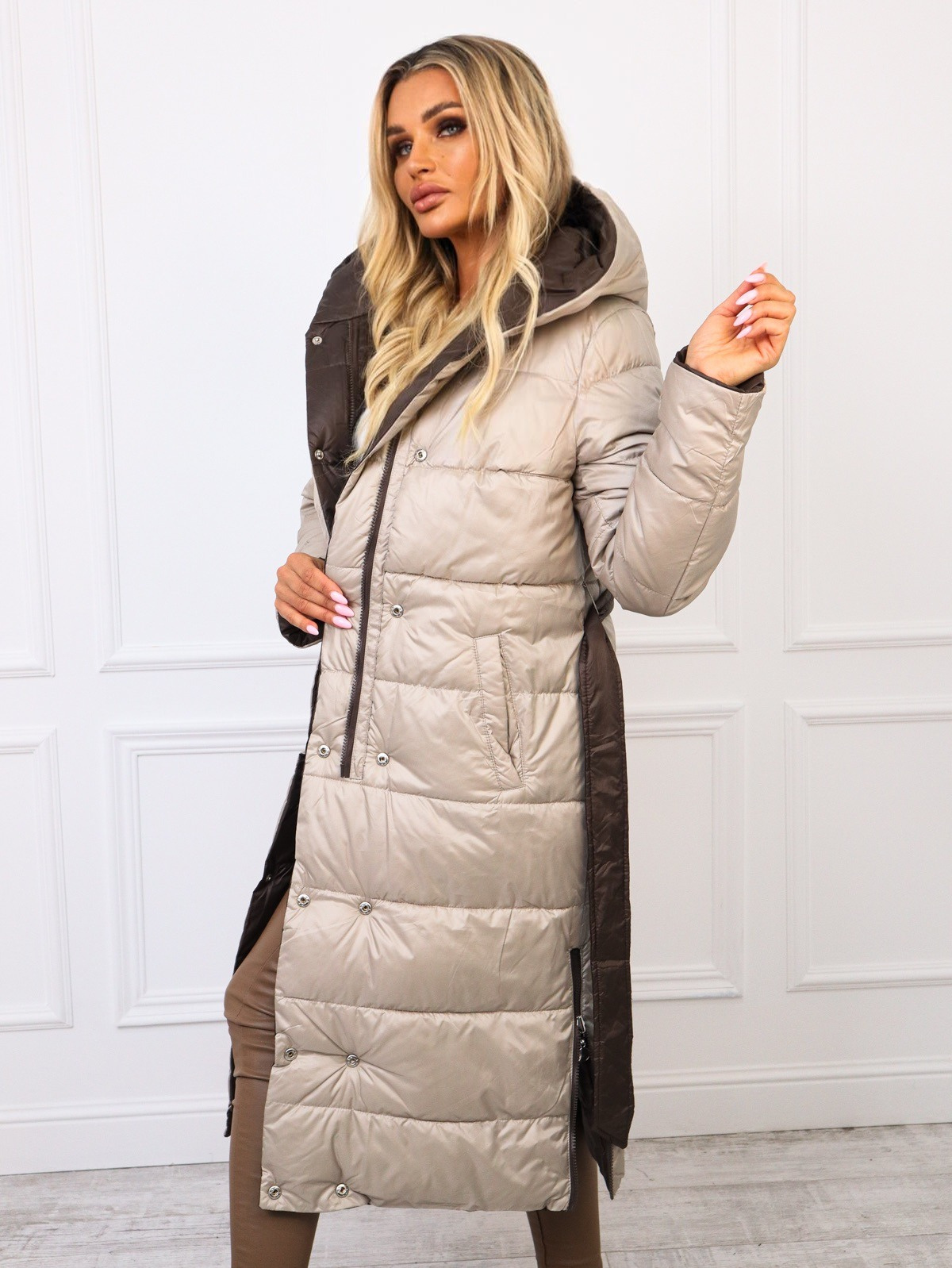 PŁASZCZ DWUSTRONNY Z WIĄZANIEM W PASIE- BRĄZOWO-BEŻOWY