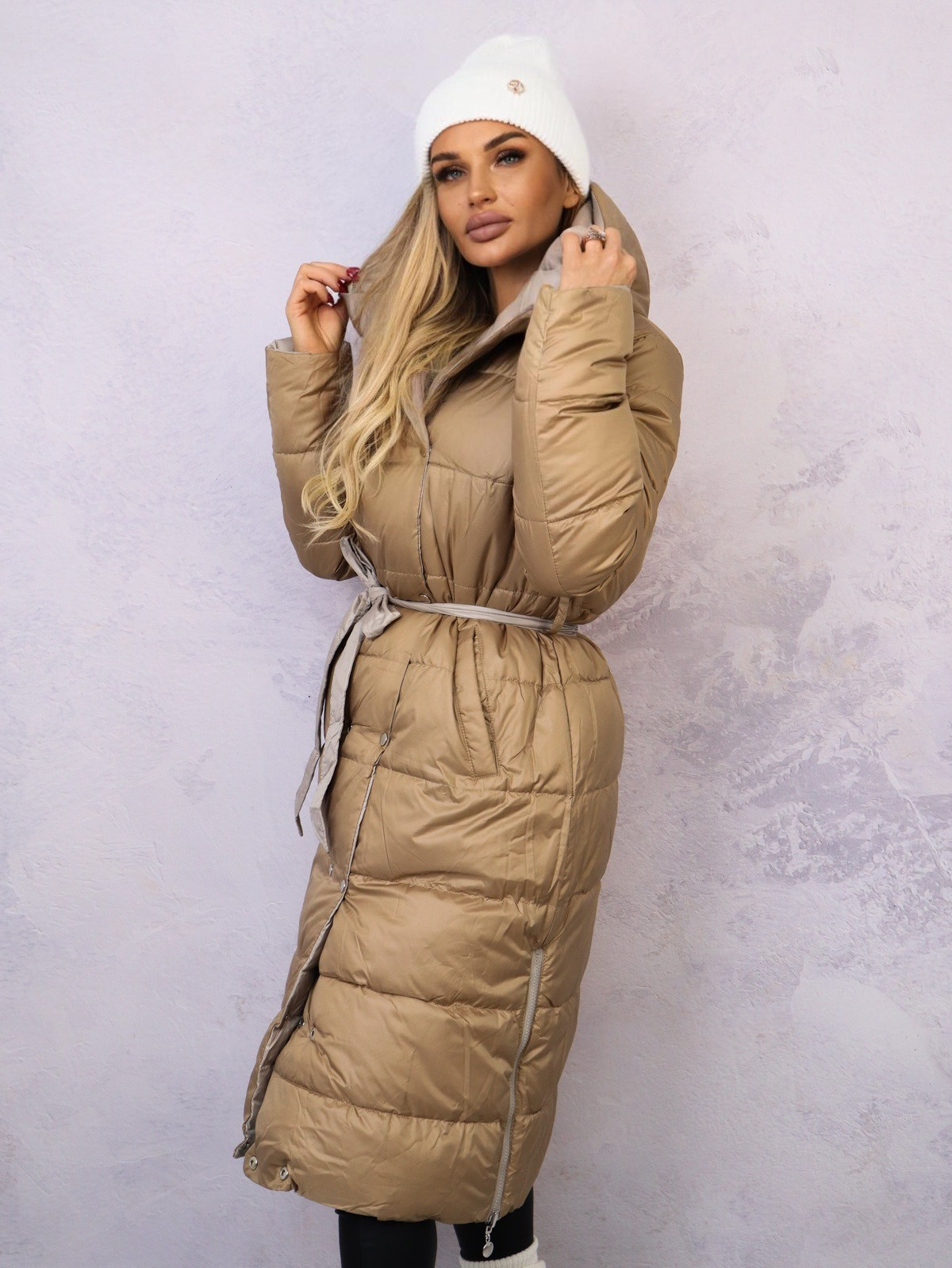 PŁASZCZ DWUSTRONNY Z WIĄZANIEM W PASIE- BEŻOWO-BRĄZOWY