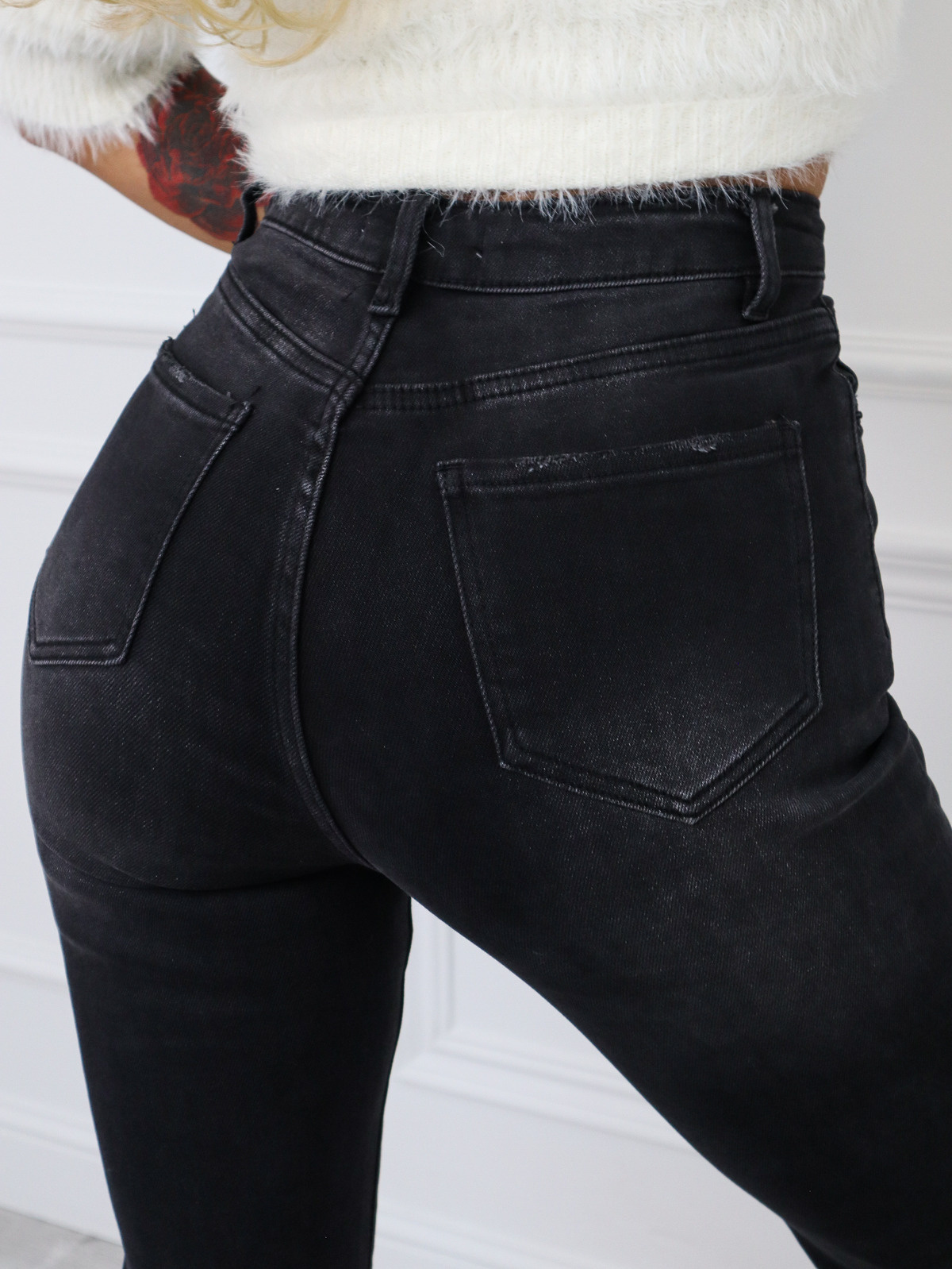SPODNIE JEANSOWE FLARE DZWONY- CZARNE
