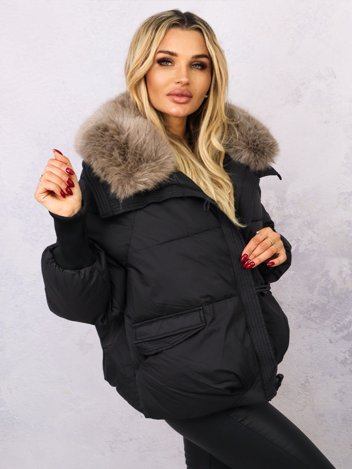KURTKA OVERSIZE Z FUTERKIEM- CZARNA
