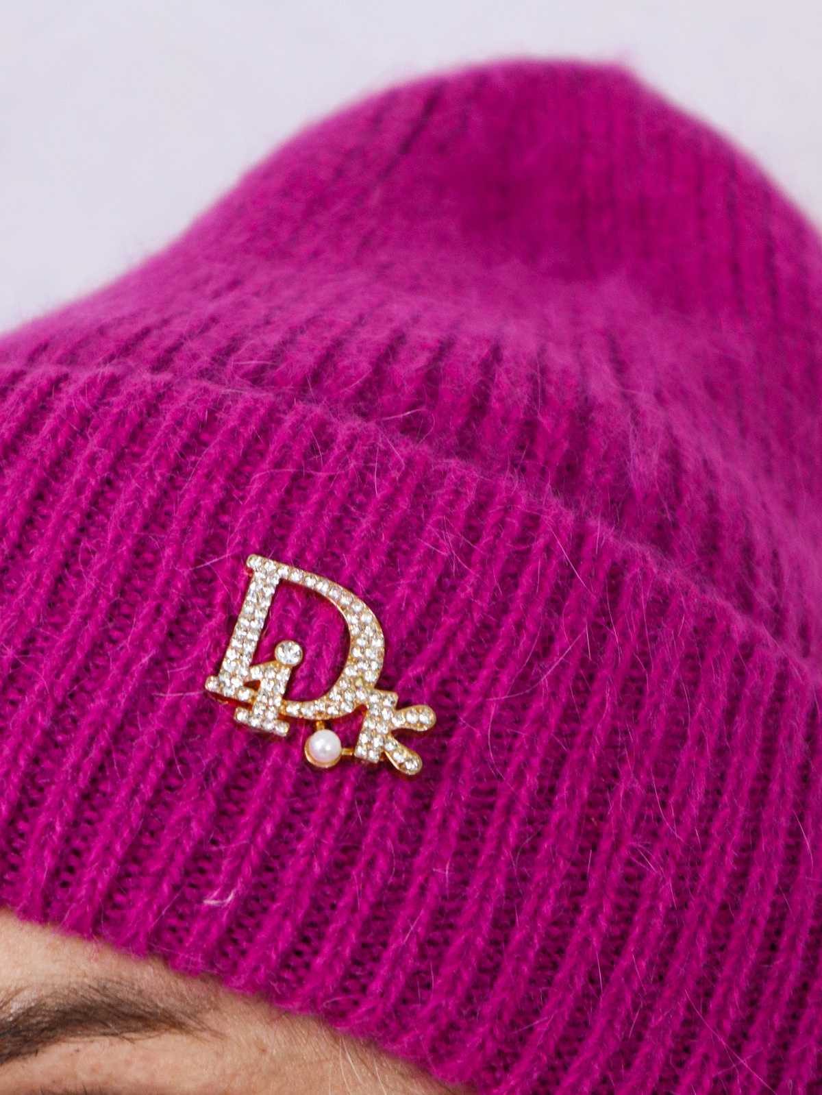 CZAPKA ZIMOWA Z BROSZKĄ W CYRKONIE DiK- CIEMNY RÓŻ