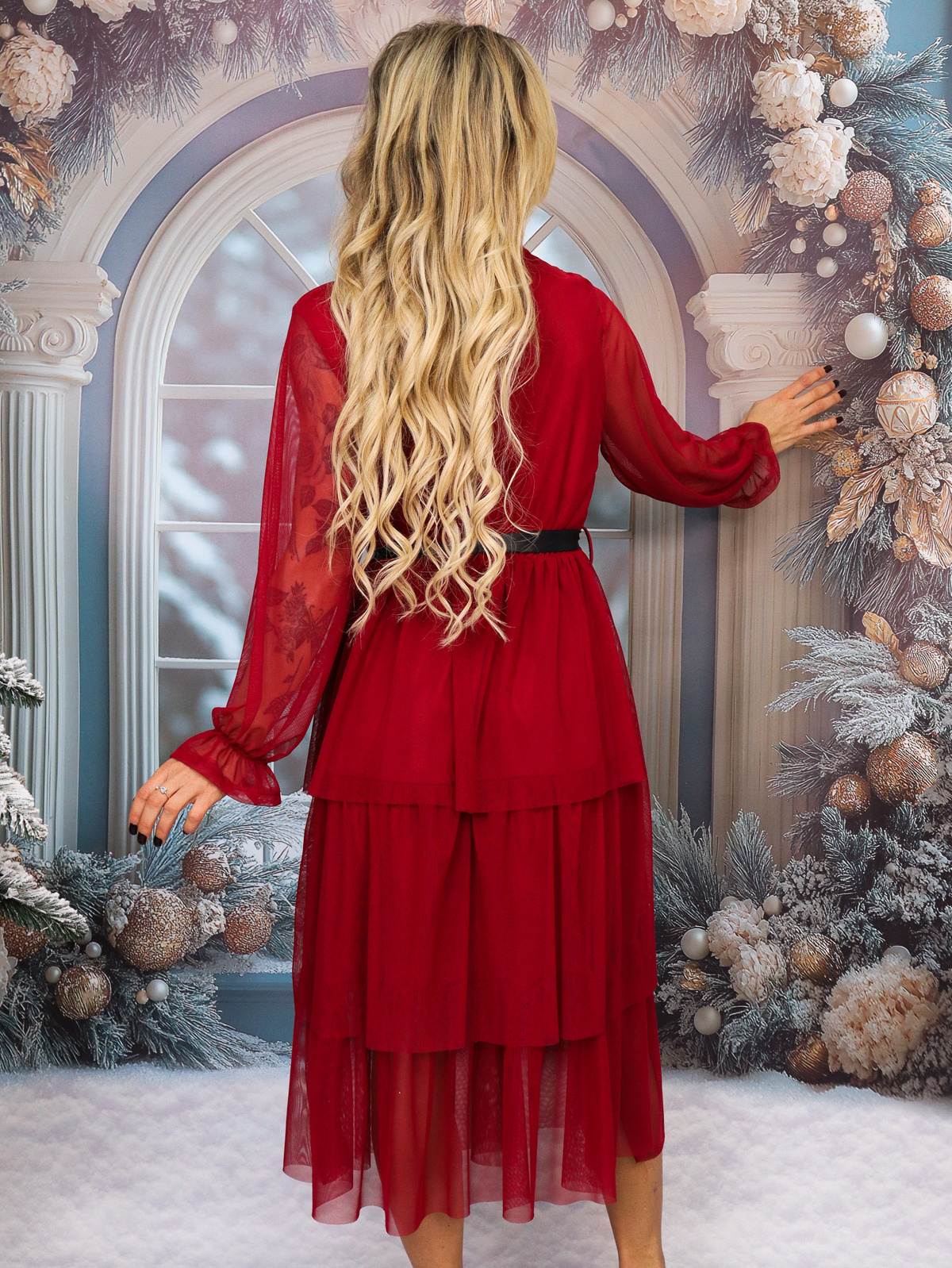 SUKIENKA MIDI Z KOPERTOWYM DEKOLTEM WIĄZANA W PASIE- CZERWONA