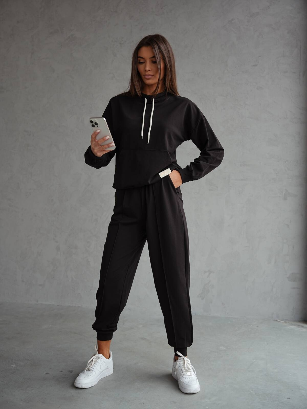 KOMPLET BAWEŁNIANY BLUZA Z SZNURKAMI+SPODNIE- CZARNY