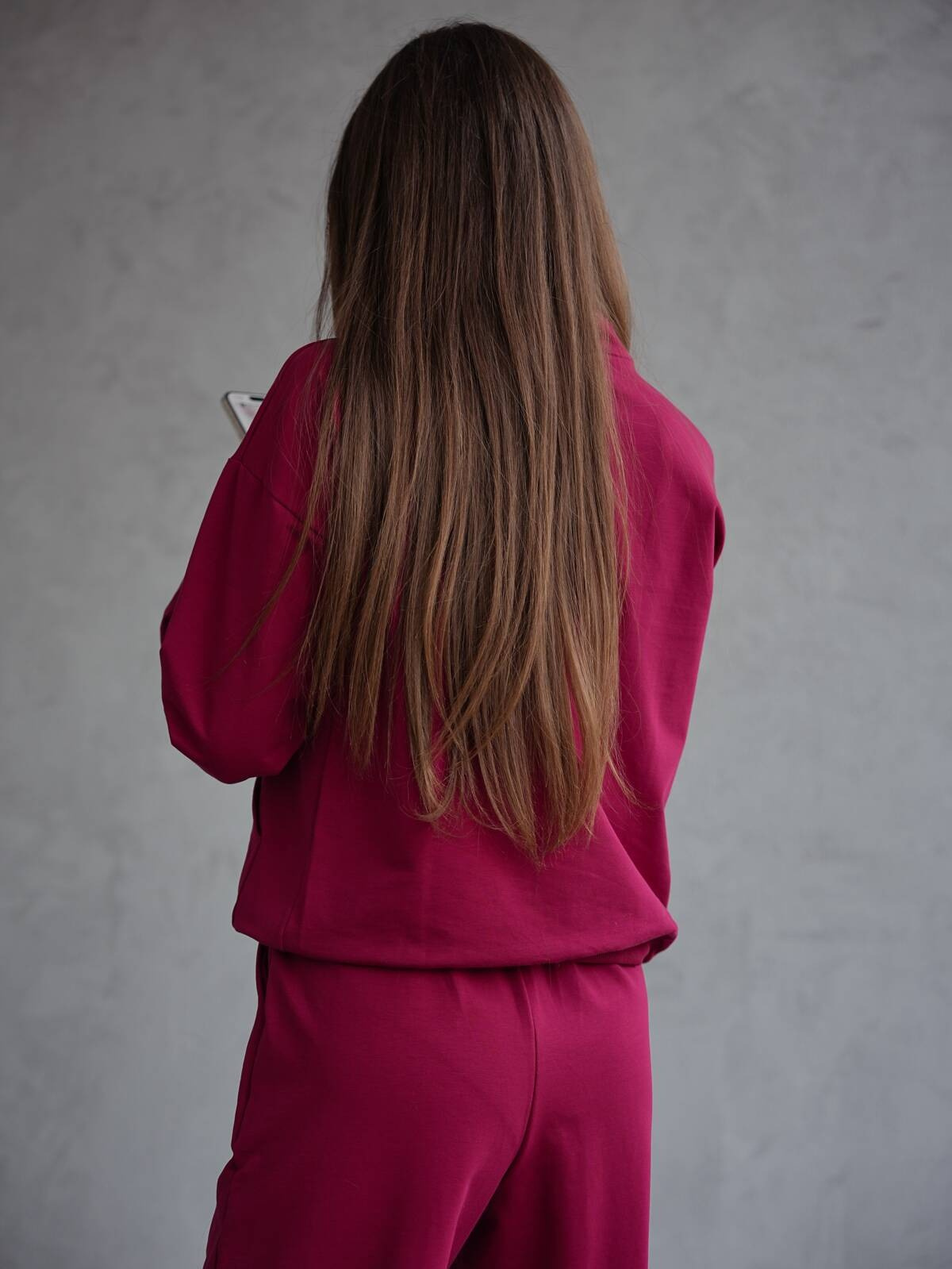 KOMPLET BAWEŁNIANY BLUZA Z SZNURKAMI+SPODNIE- BORDOWY