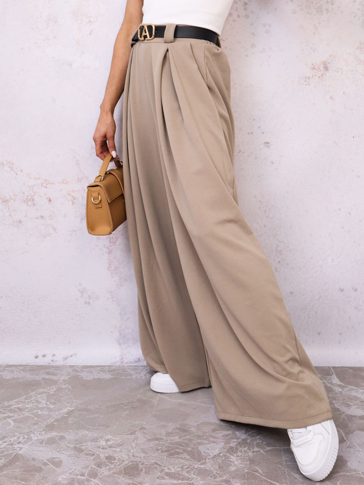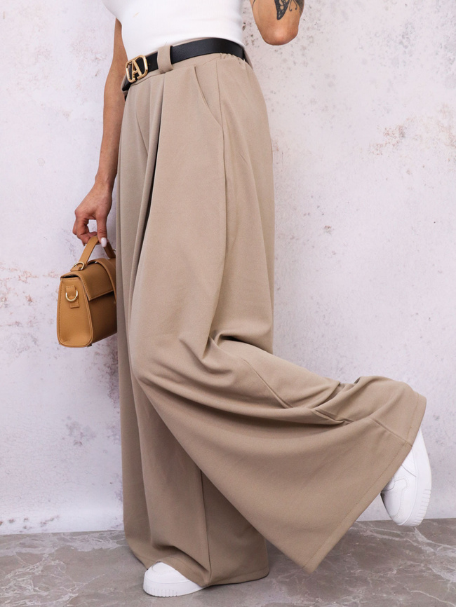 SPODNIE MATERIAŁOWE Z SZEROKIMI NOGAWKAMI+ PASEK- BEŻOWE