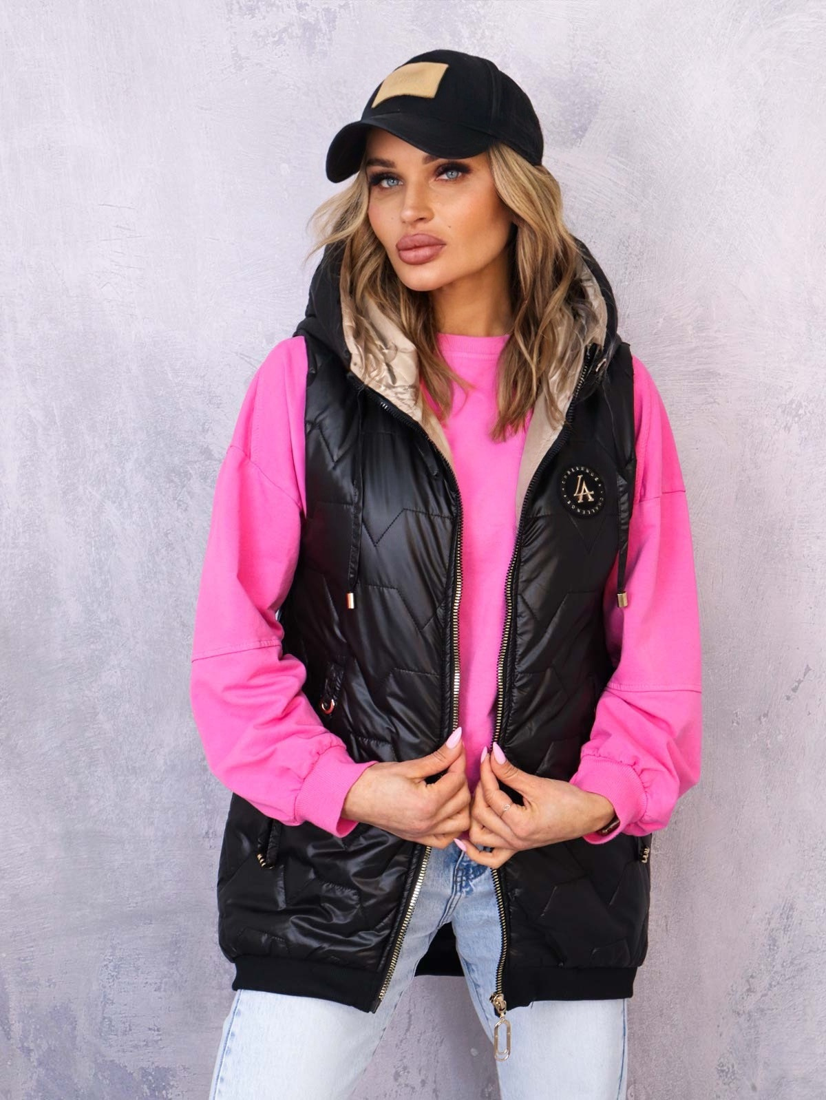 ASYMETRYCZNA KAMIZELKA Z OZDOBNĄ NASZYWKĄ- CZARNA