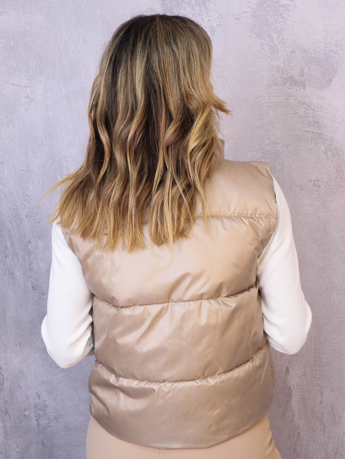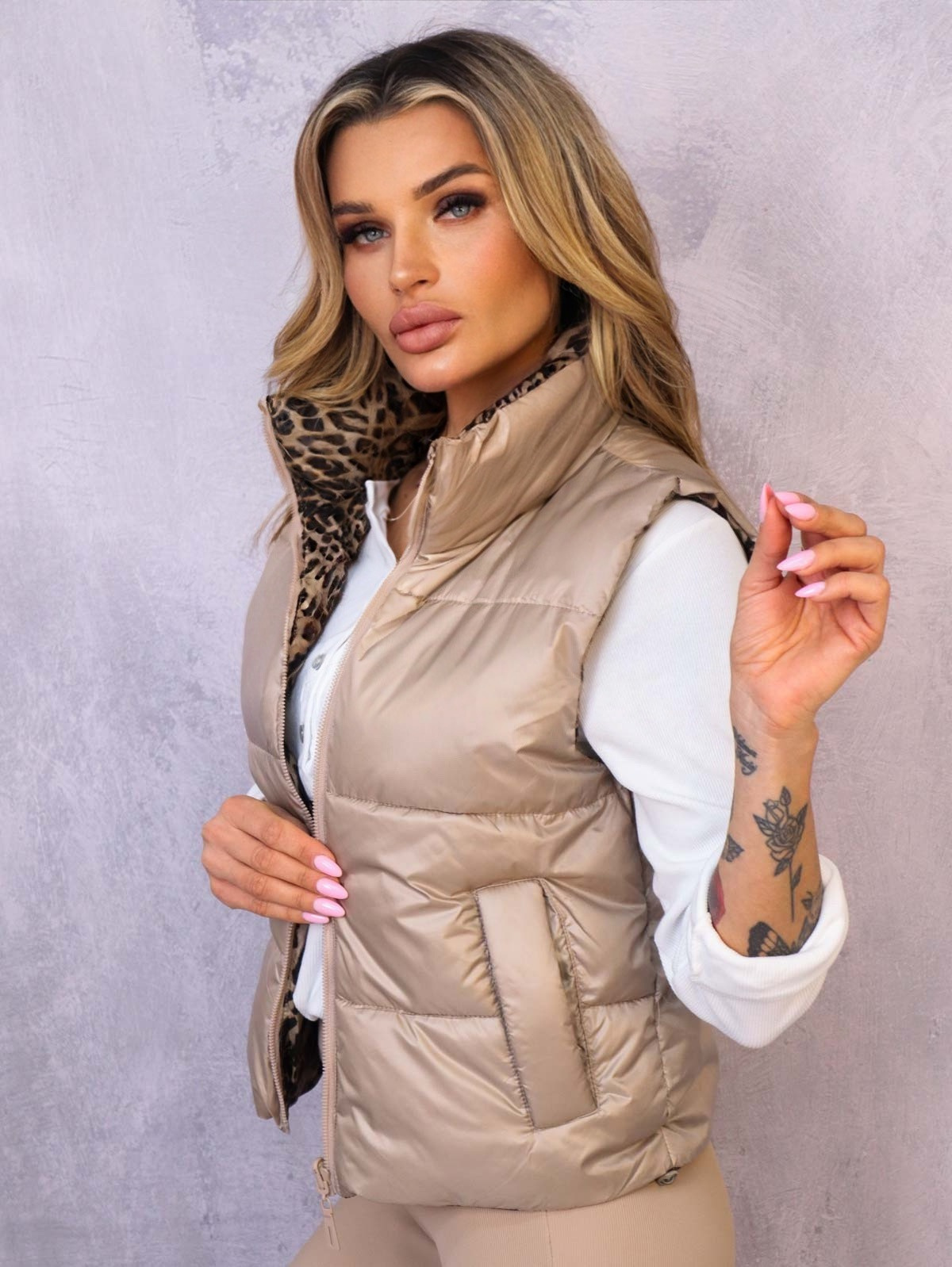 KRÓTKA DWUSTRONNA KAMIZELKA Z KIESZENIAMI- BRĄZOWA