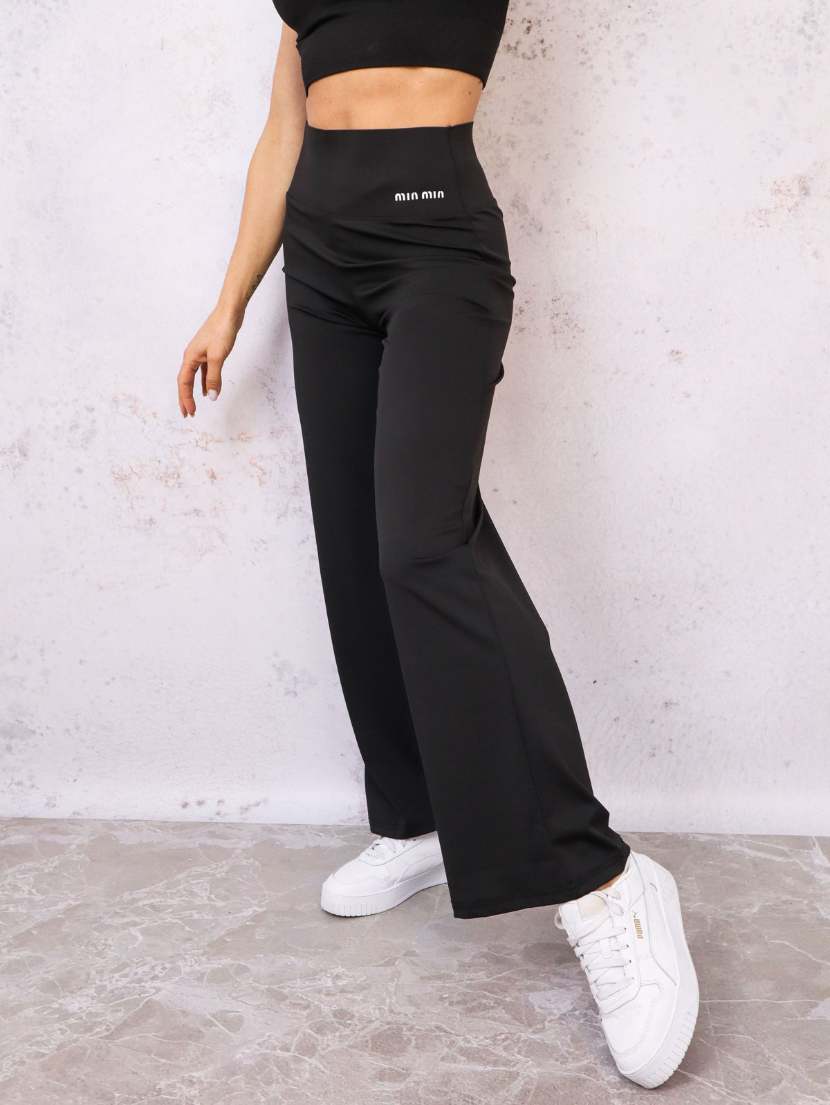 LEGGINSY Z SZEROKIMI NOGAWKAMI I OZDOBNYM NAPISEM- CZARNE