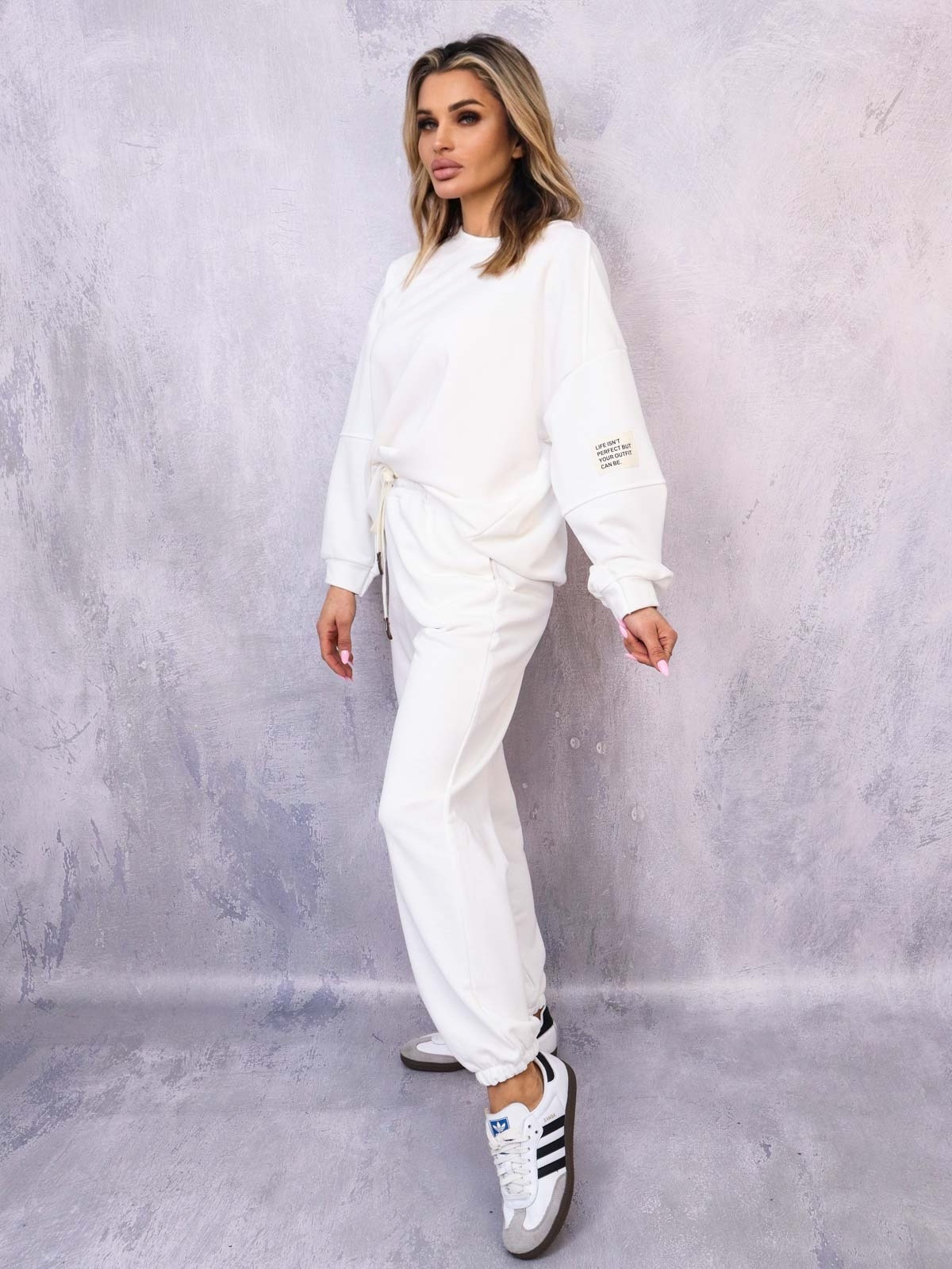 KOMPLET DRESOWY BLUZA Z NASZYWKĄ+ SPODNIE- BIAŁY