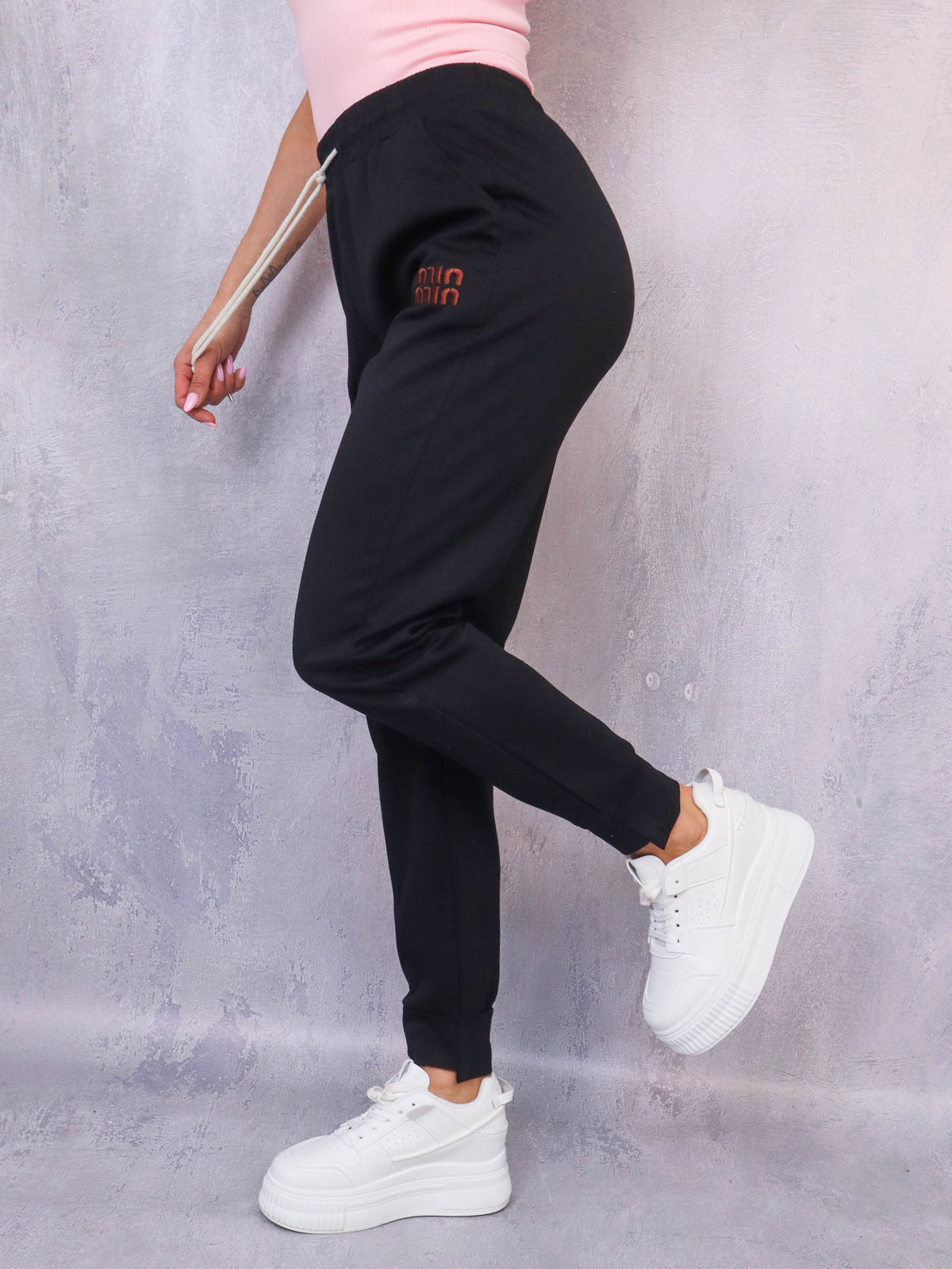SPODNIE DRESOWE Z HAFTOWANYM NAPISEM MIN MIN- CZARNE