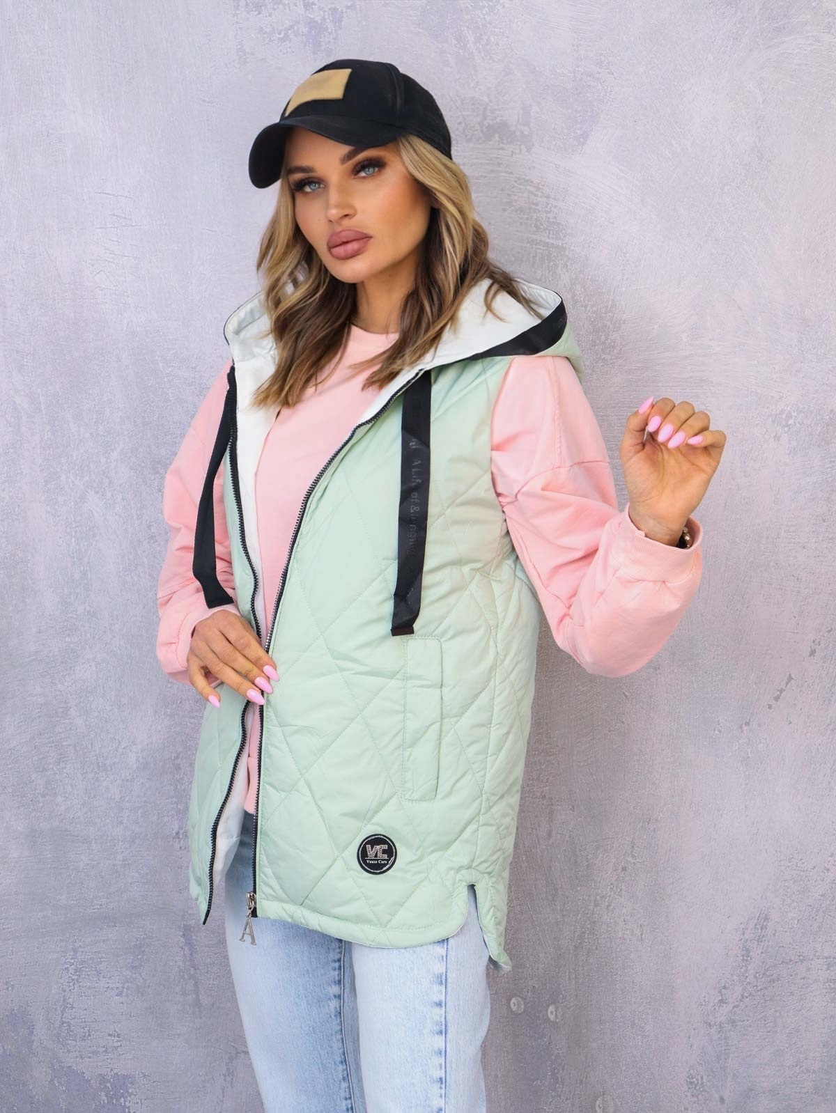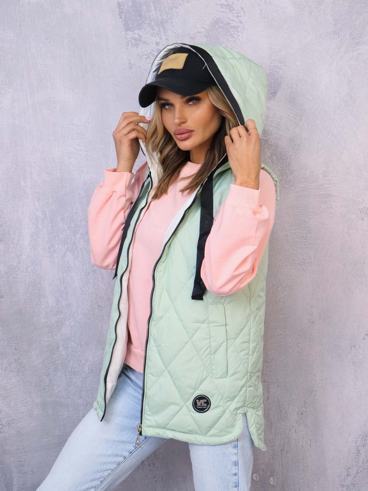 PIKOWANA KAMIZELKA ASYMETRYCZNA Z NASZYWKĄ- ZIELONA