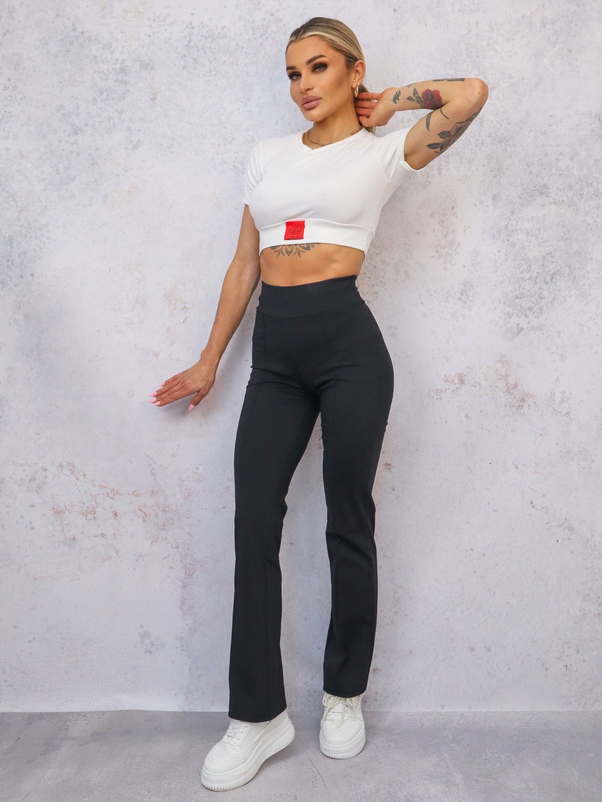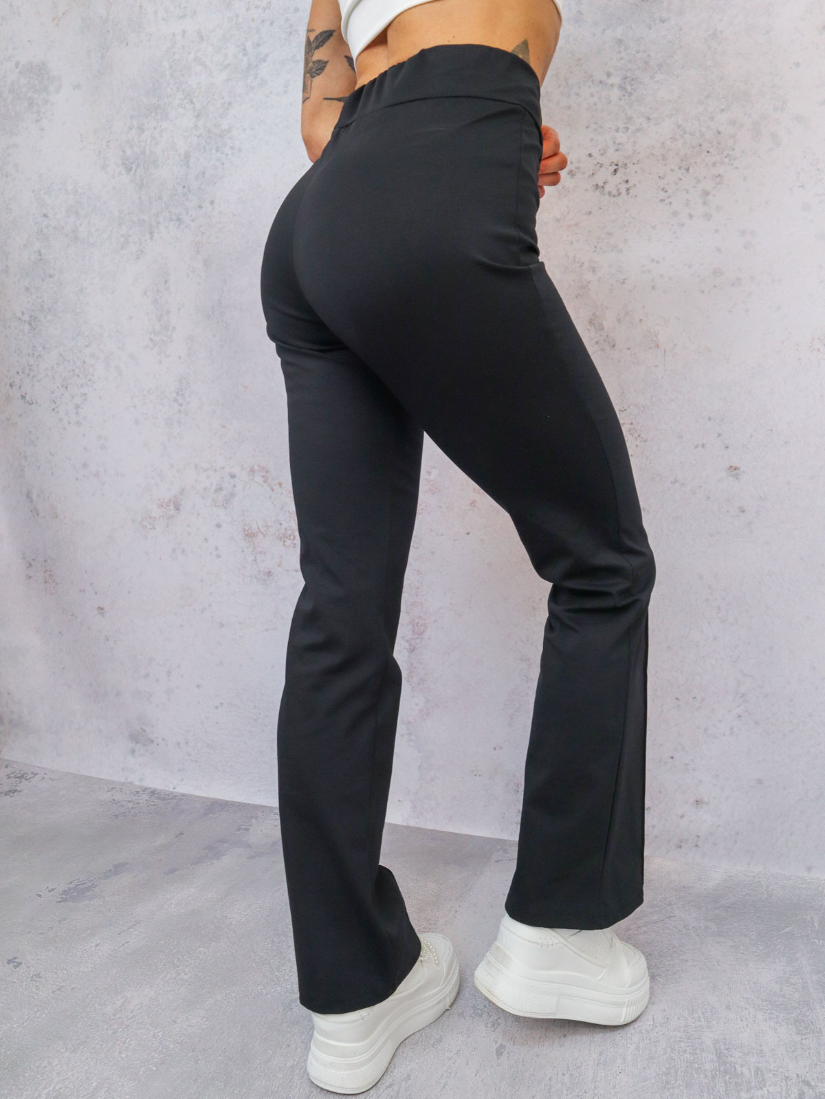 SPODNIE DZWONY FLARE Z PRZESZYCIEM- CZARNE