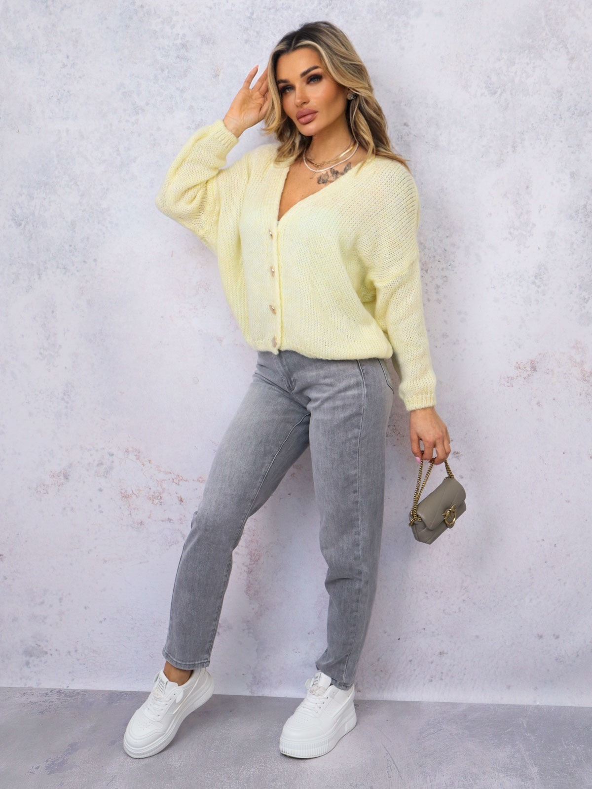 LUŹNY SWETER ZE ZŁOTYMI GUZIKAMI- ŻÓŁTY