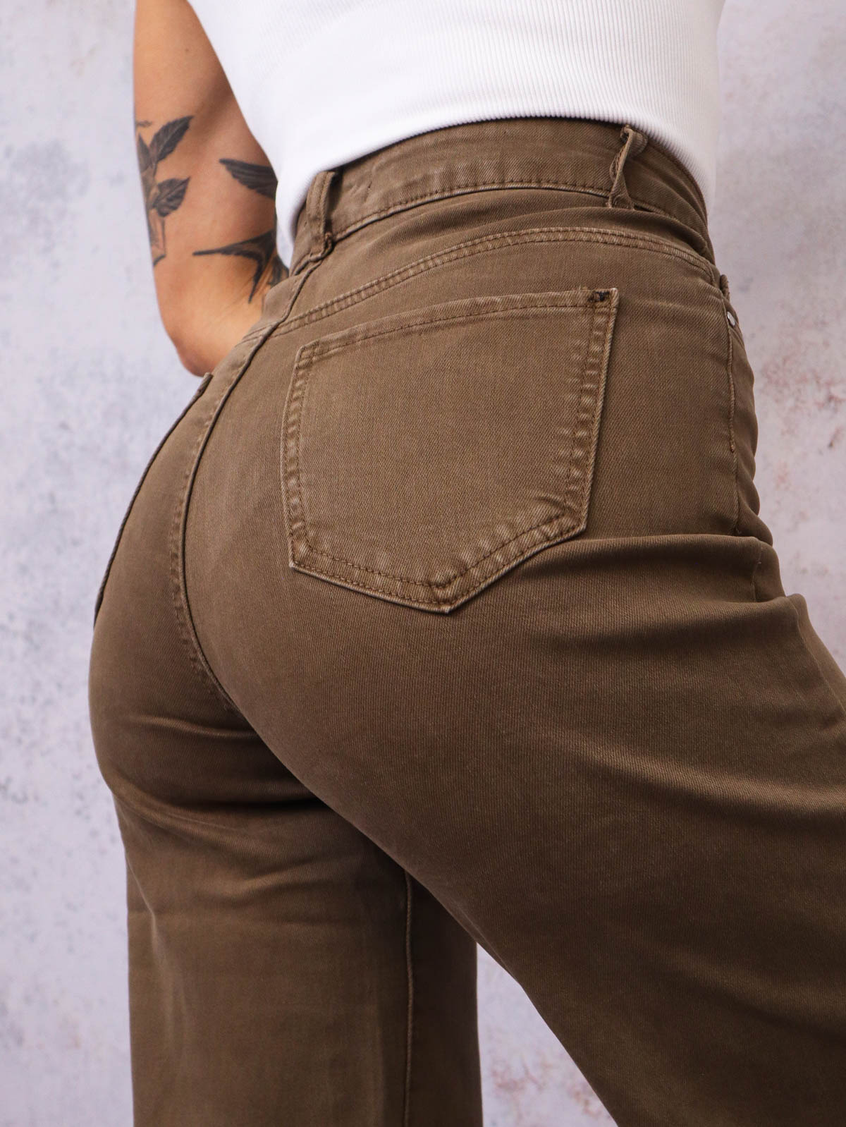 CIEMNOBRĄZOWE SPODNIE JEANSOWE Z SZEROKIMI NOGAWKAMI