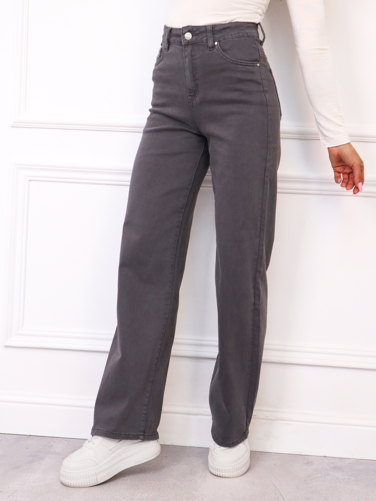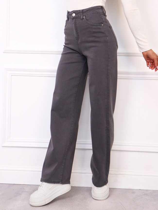 SZARE SPODNIE JEANSOWE Z SZEROKIMI NOGAWKAMI