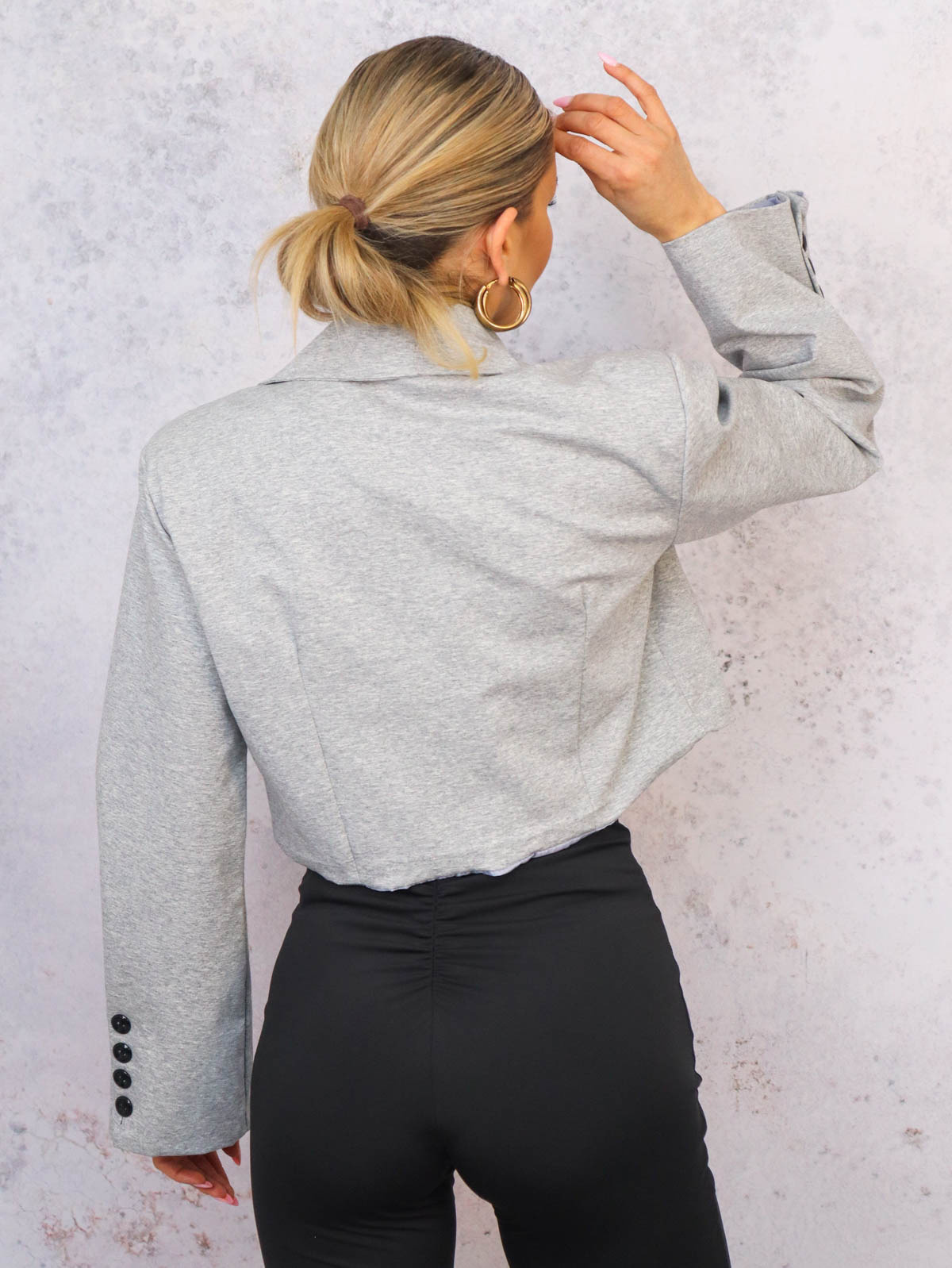 KRÓTKA MARYNARKA ZAPINANA NA GUZIKI- SZARA
