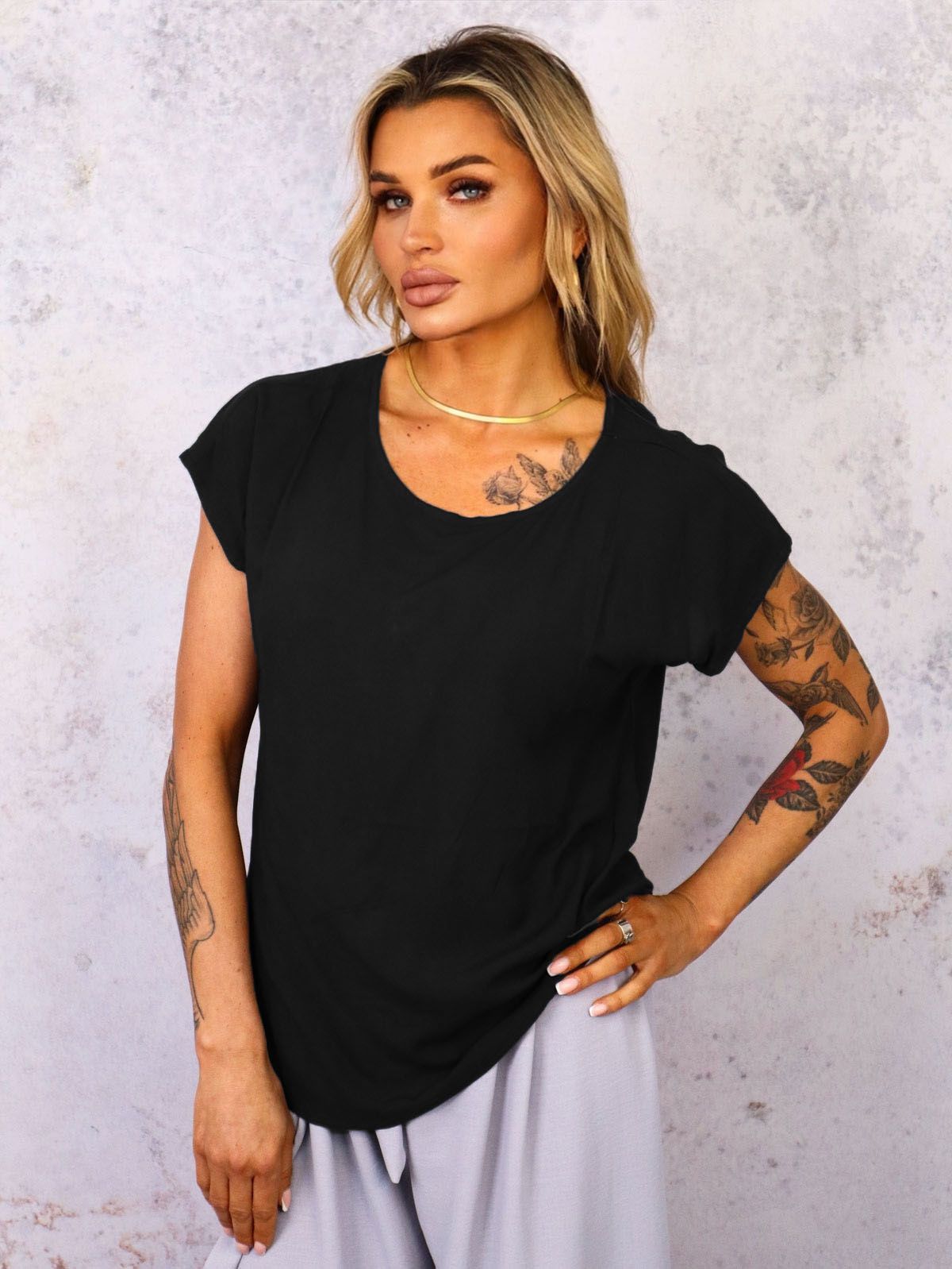ASYMETRYCZNY T-SHIRT OVERSIZE- CZARNY