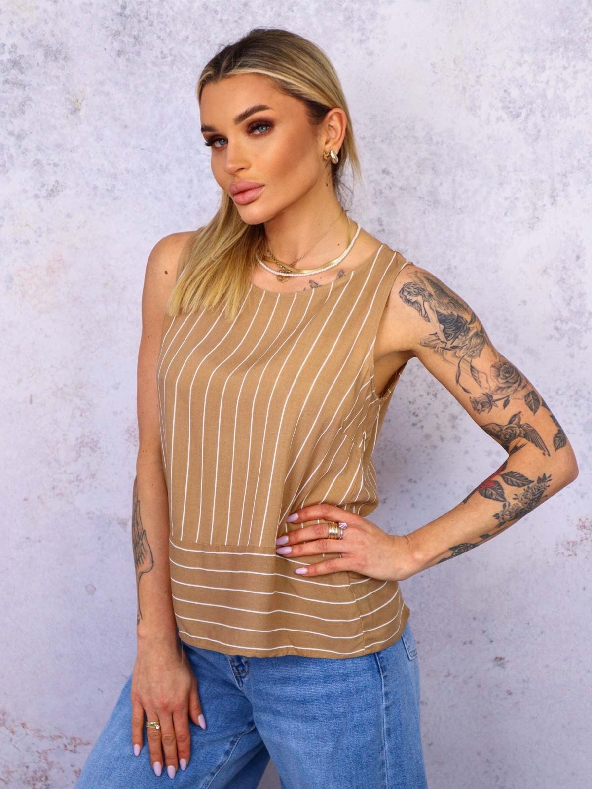 TOP NA RAMIĄCZKACH W PASKI- BRĄZOWY