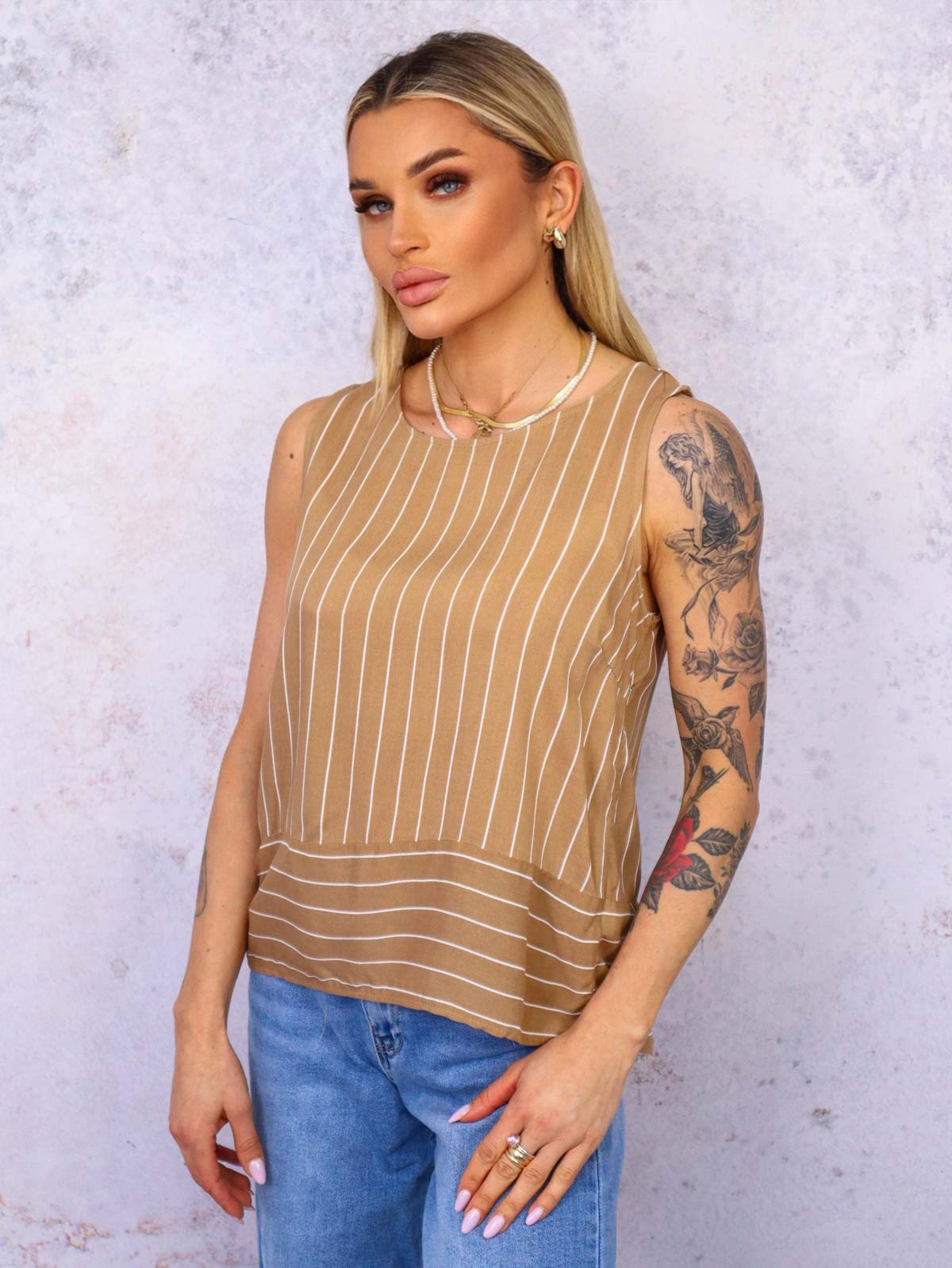 Top na ramiączkach w paski. Ozdobne przeszycie na dole.