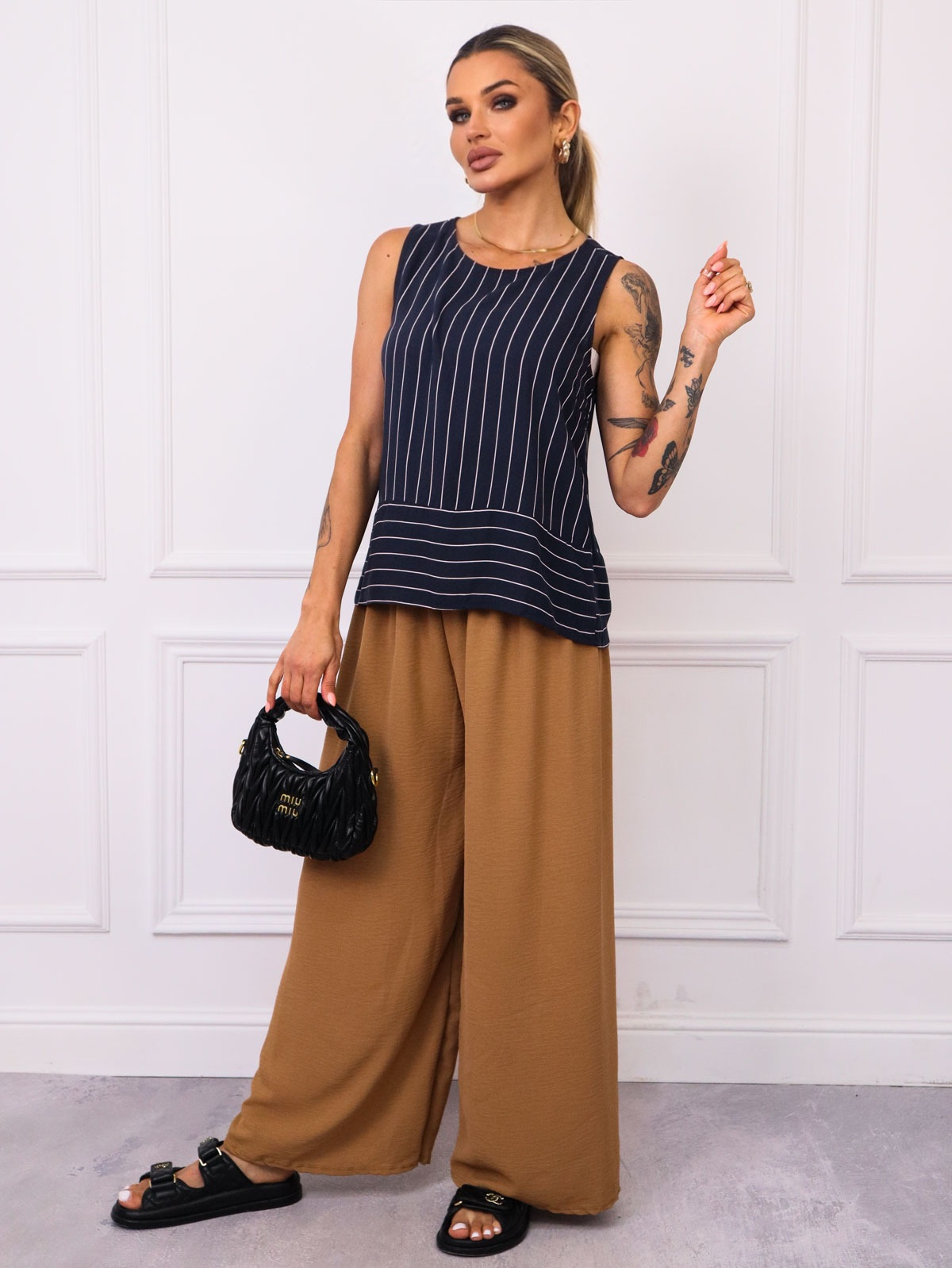 TOP NA RAMIĄCZKACH W PASKI- GRANATOWY