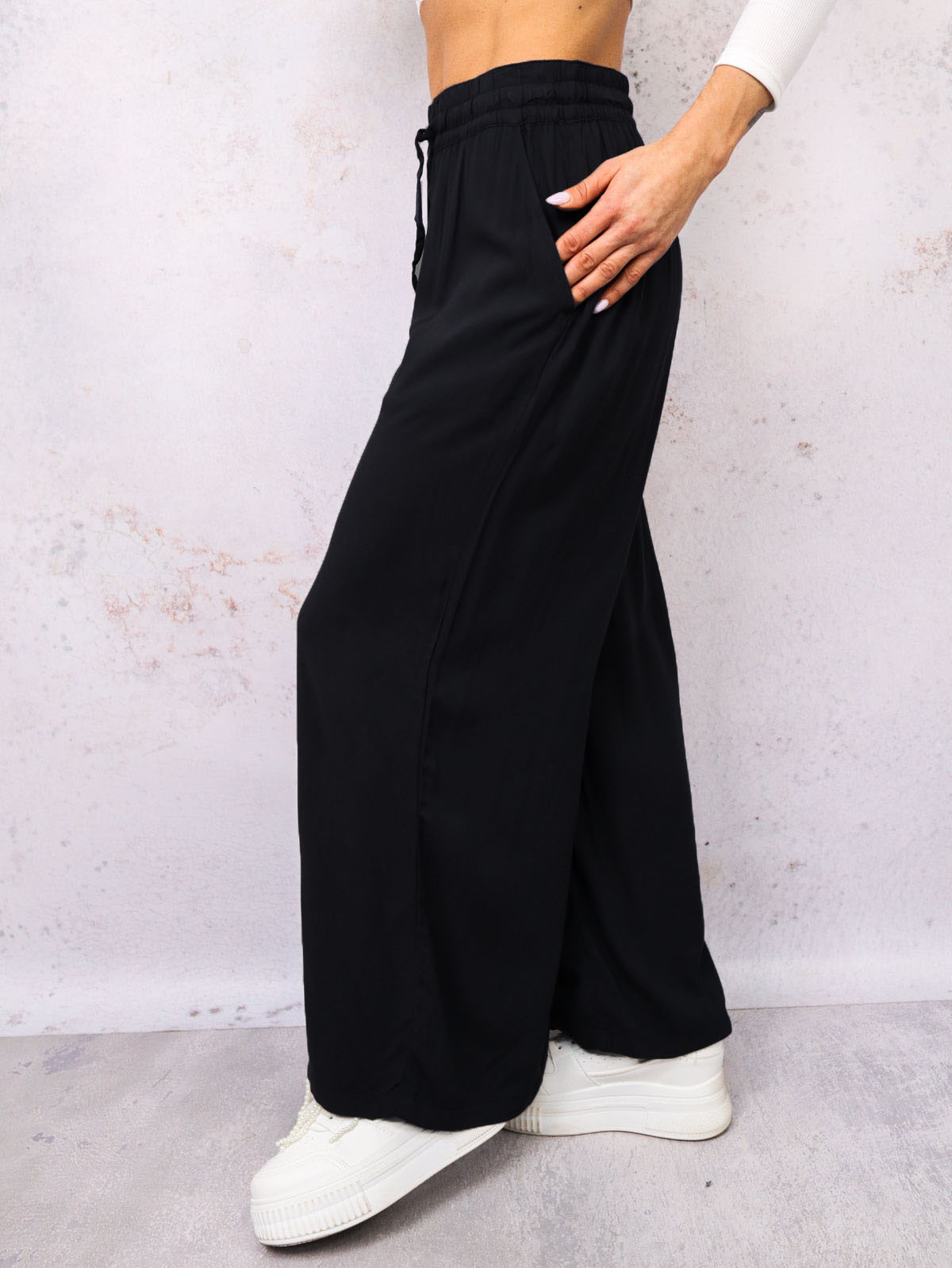 SPODNIE MATERIAŁOWE Z SZEROKIMI NOGAWKAMI- CZARNE