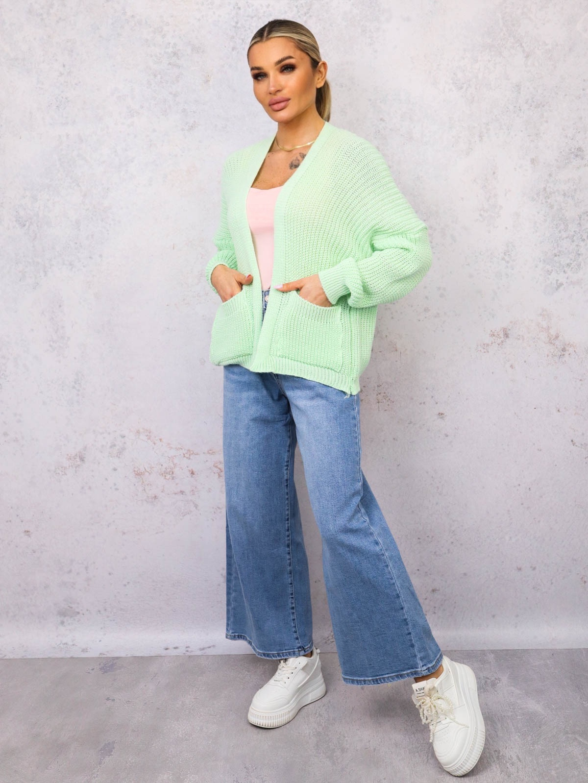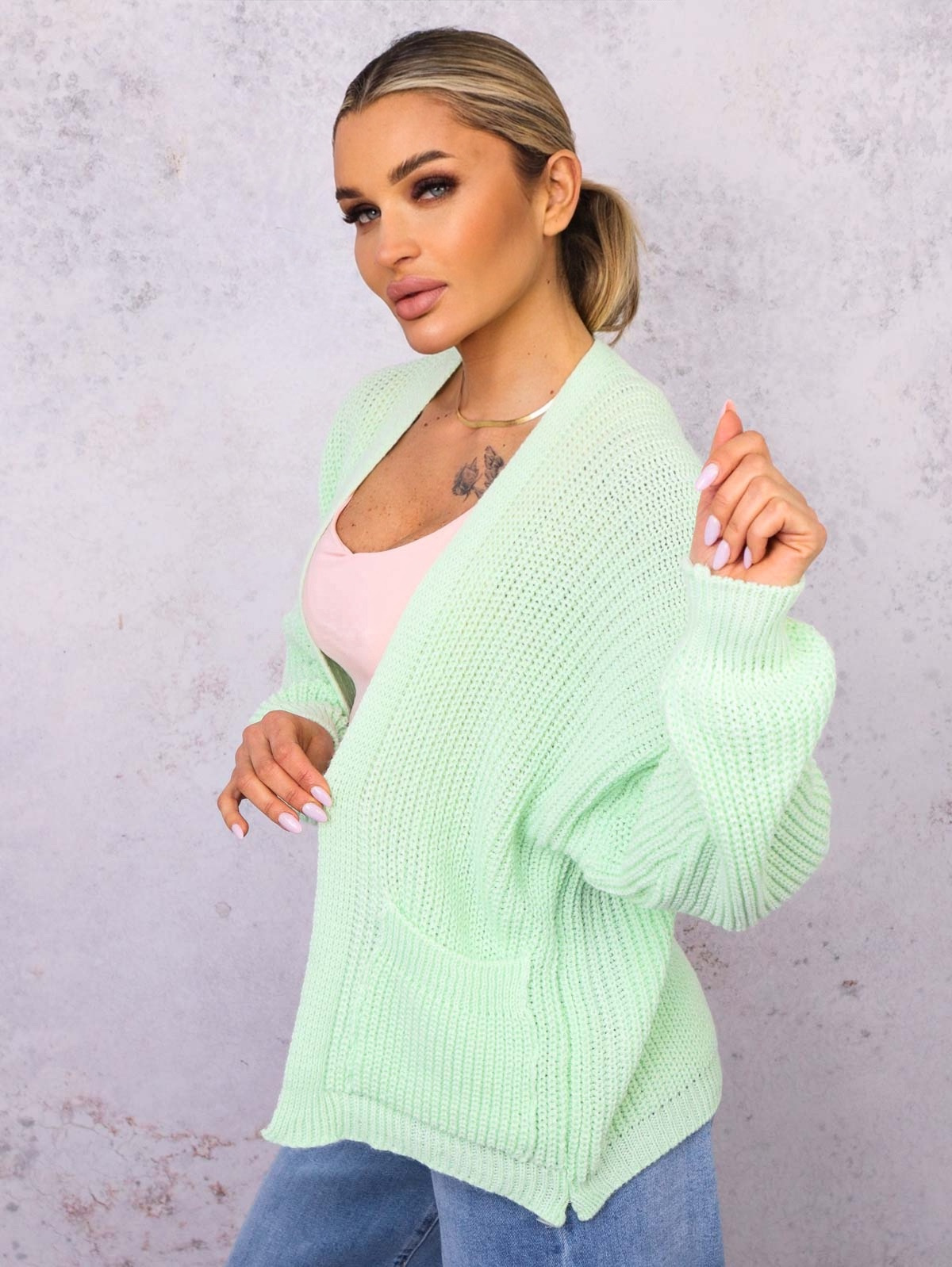 NARZUTA KARDIGAN DZIANINOWY Z KIESZENIAMI- ZIELONY