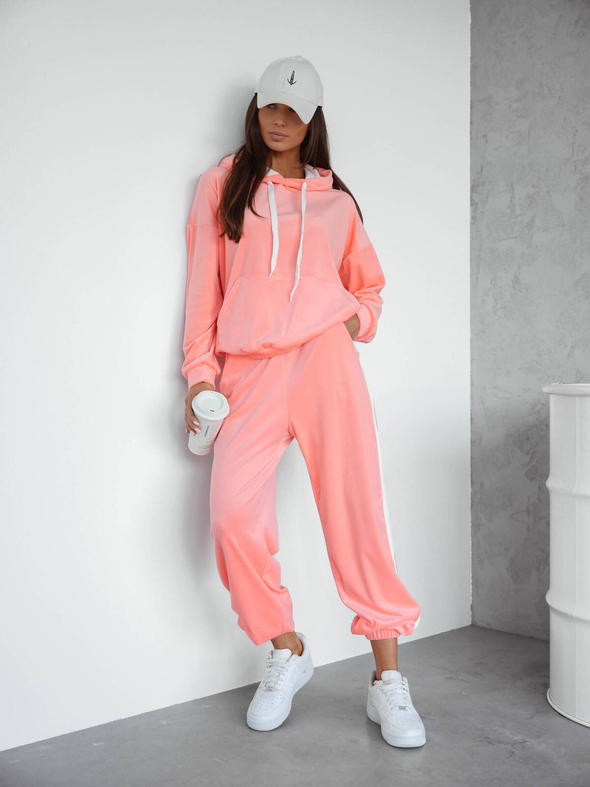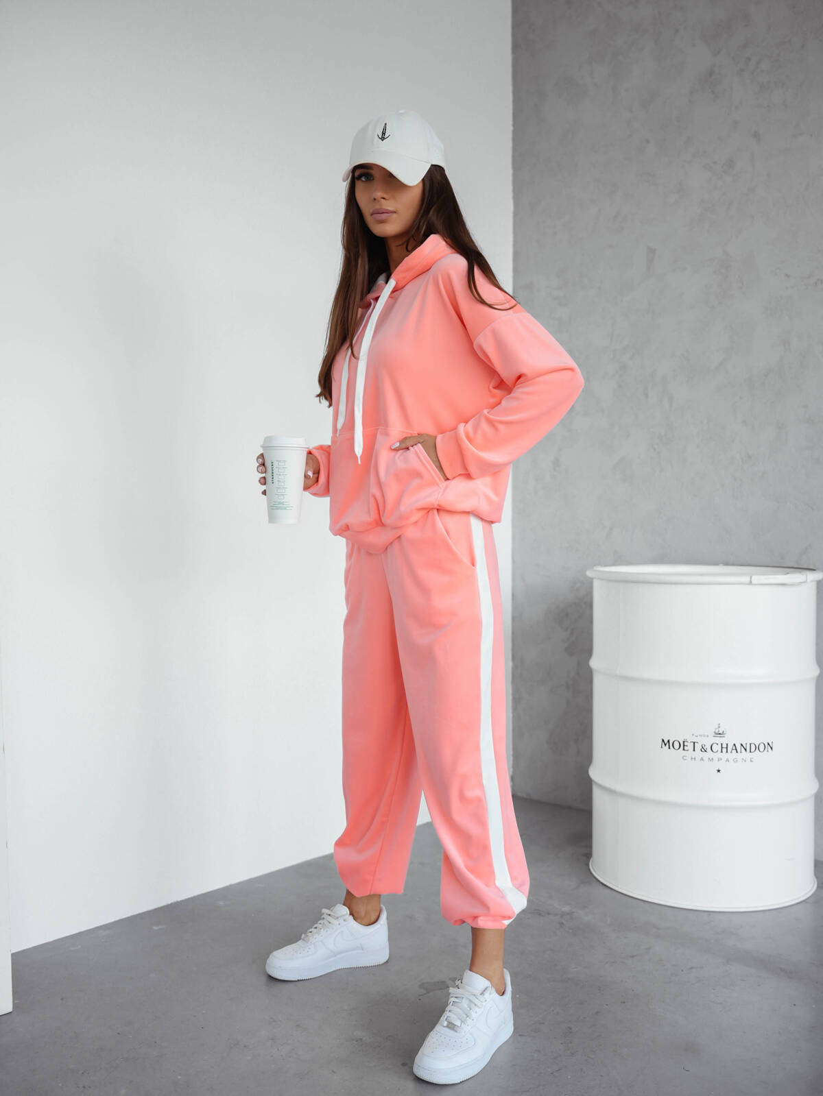 KOMPLET WELUROWY BLUZA+ SPODNIE Z KONTRASTOWYMI LAMPASAMI-BRZOSKWINIOWY