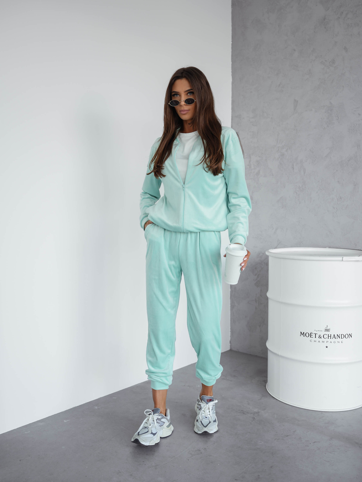 KOMPLET DRESOWY WELUROWY BLUZA ZAPINANA NA ZAMEK+ SPODNIE- MIĘTOWY