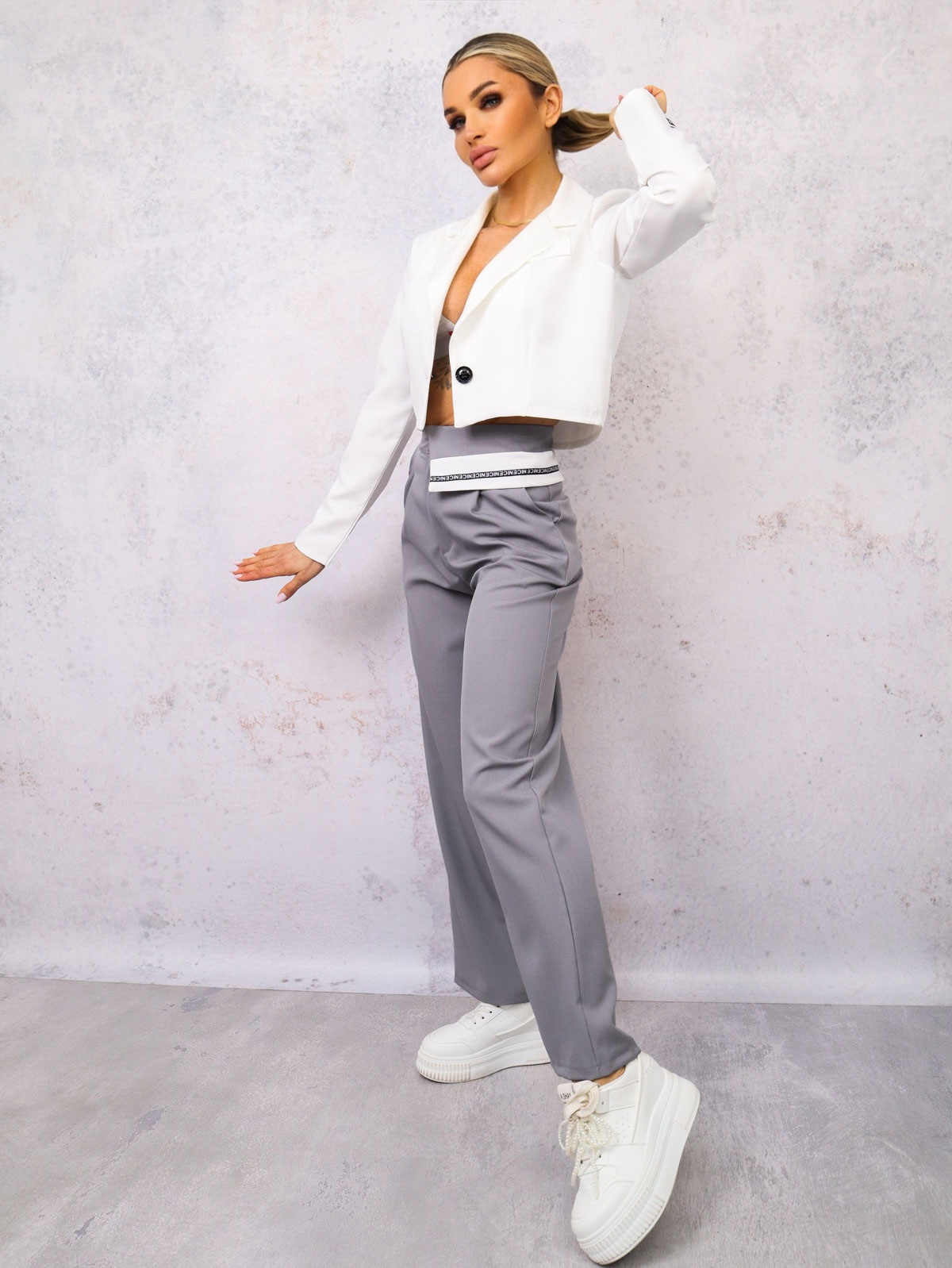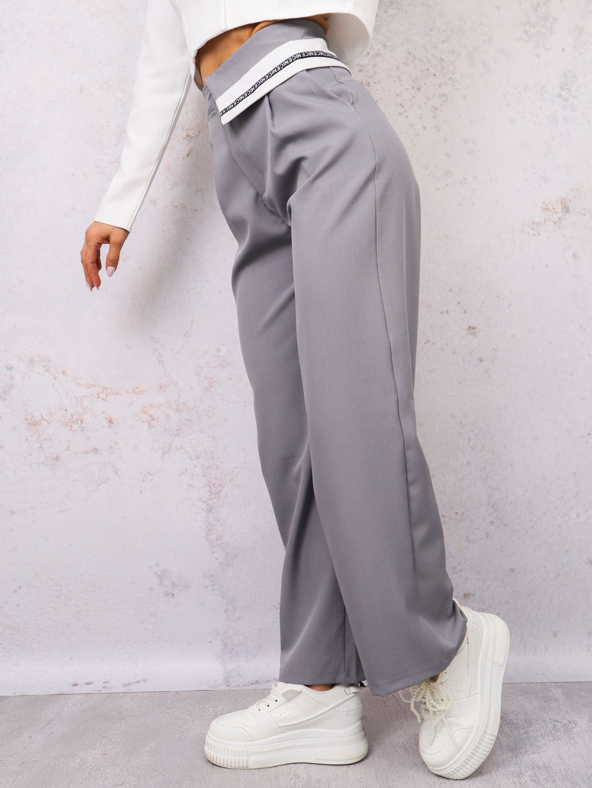 SPODNIE MATERIAŁOWE ELEGANCKIE Z MANKIETEM W PASIE- SZARE