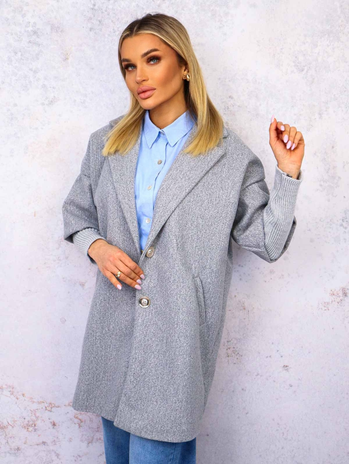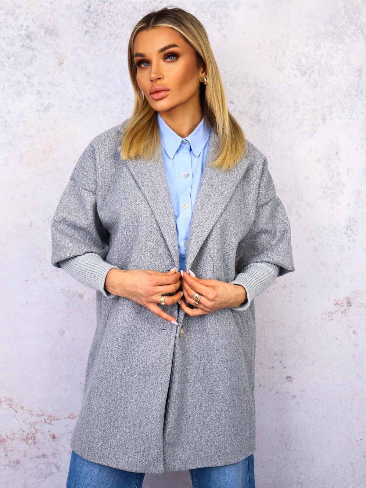 PŁASZCZ ZE SWETROWYMI RĘKAWAMI- SZARY