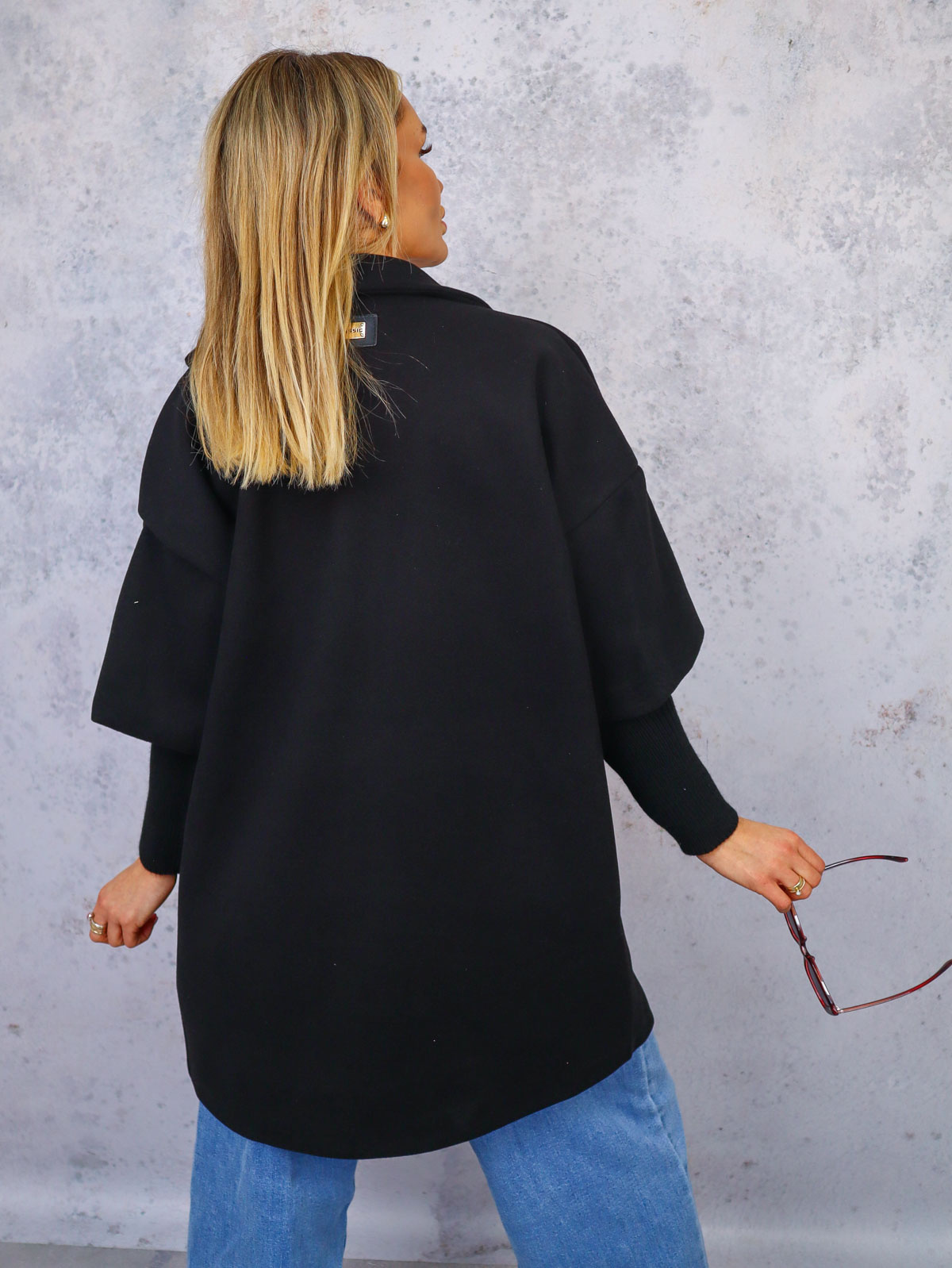 PŁASZCZ ZE SWETROWYMI RĘKAWAMI- CZARNY