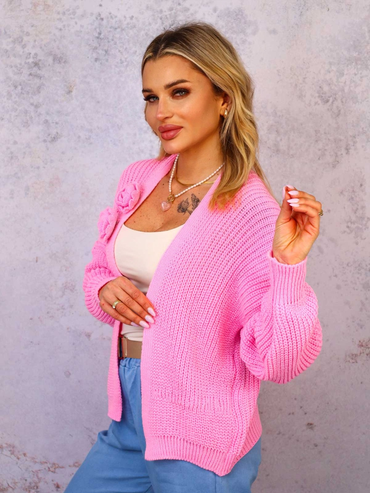 KRÓTKI KARDIGAN Z PRZYPINANYMI KWIATAMI- RÓŻOWY