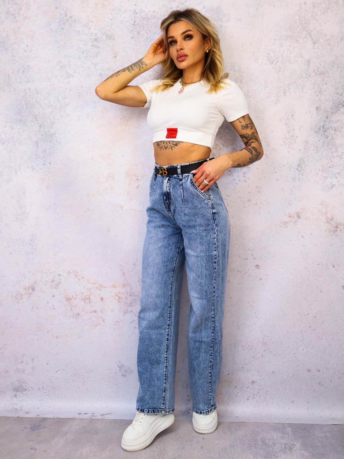 SPODNIE JEANSOWE DEKATYZOWANE Z SZEROKIMI NOGAWKAMI+ PASEK