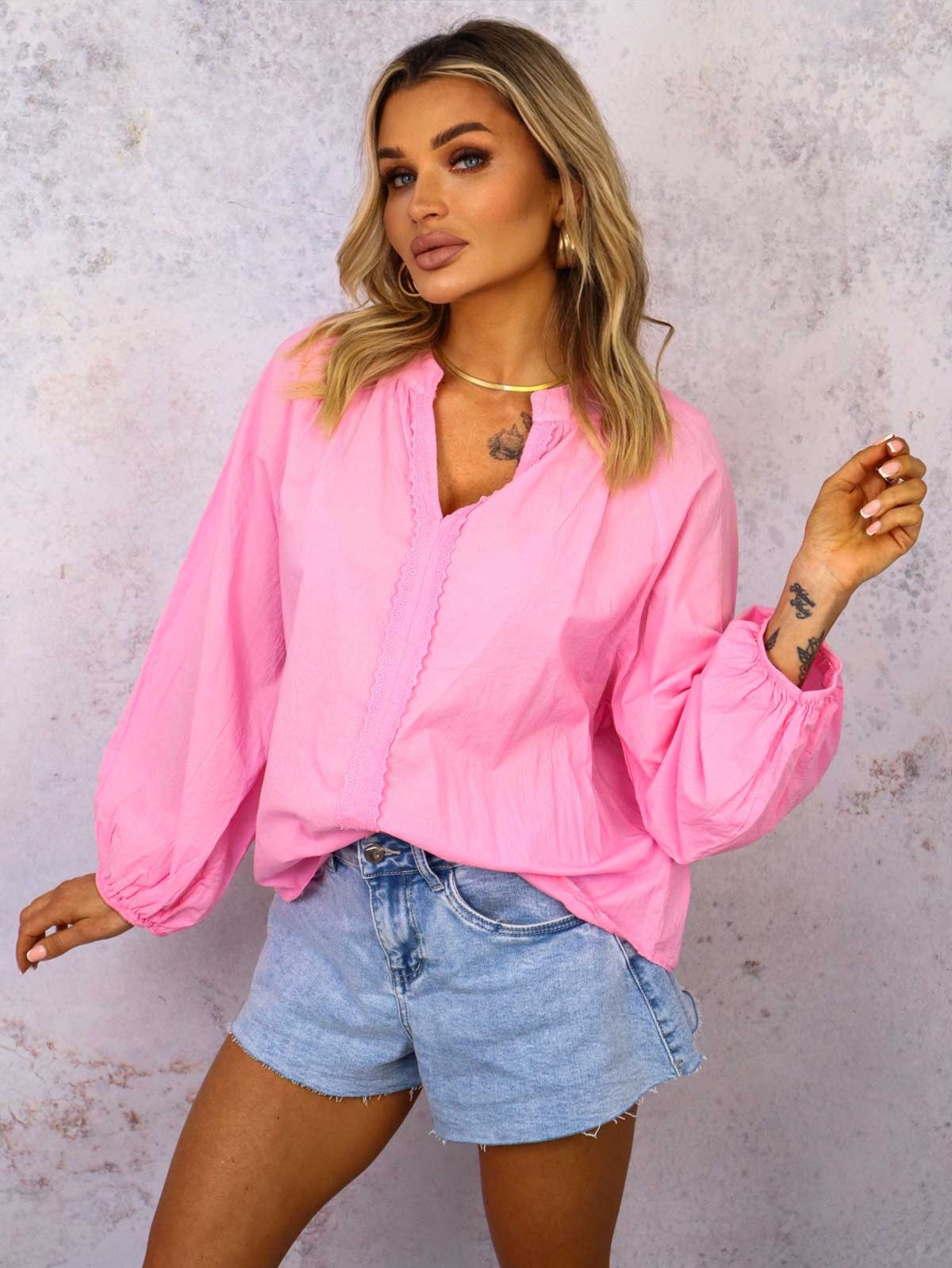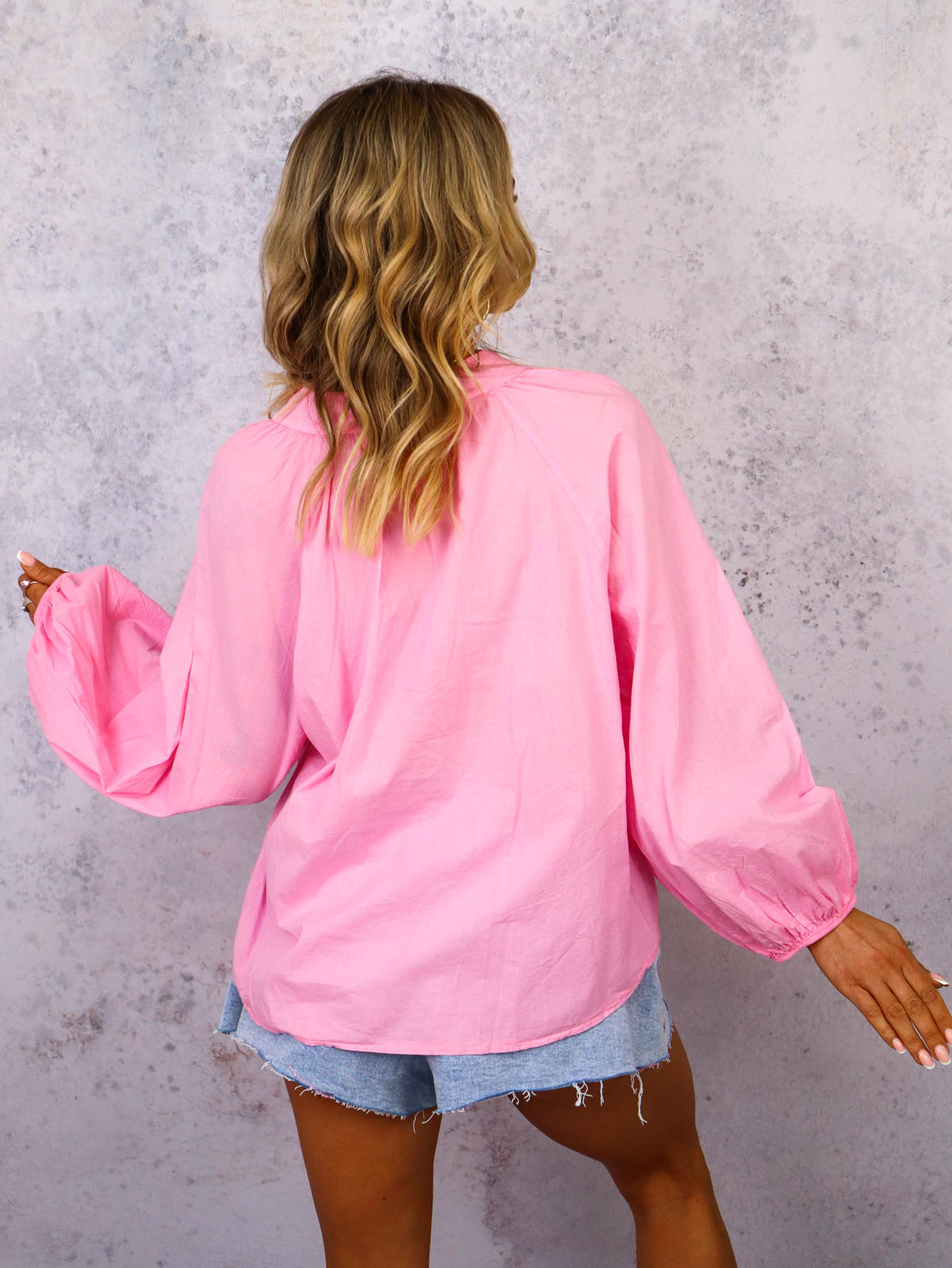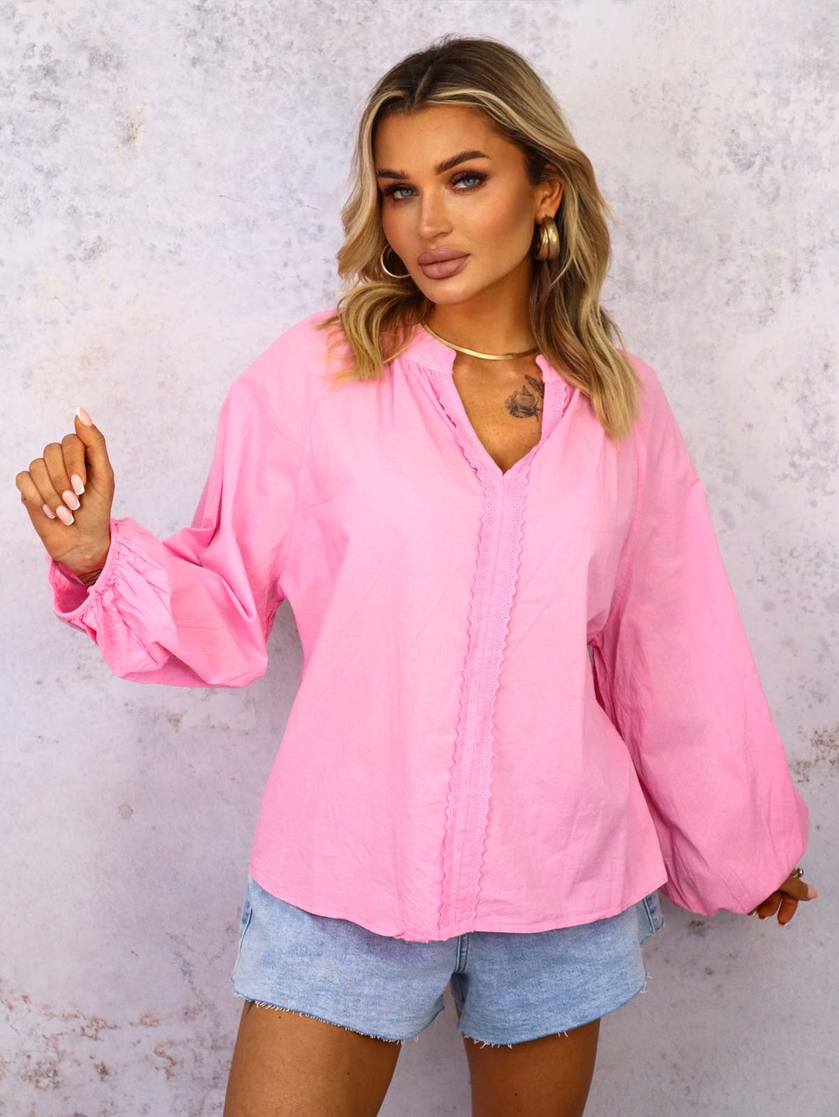 BLUZKA KOSZULOWA Z OZDOBNYM HAFTEM- RÓŻOWA