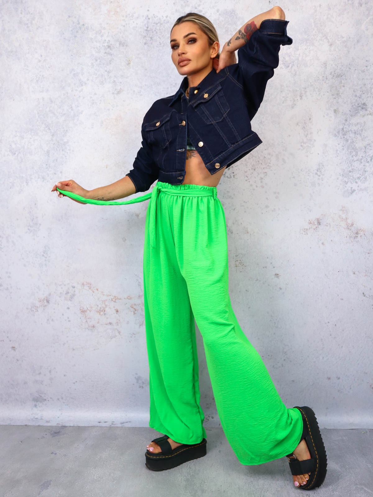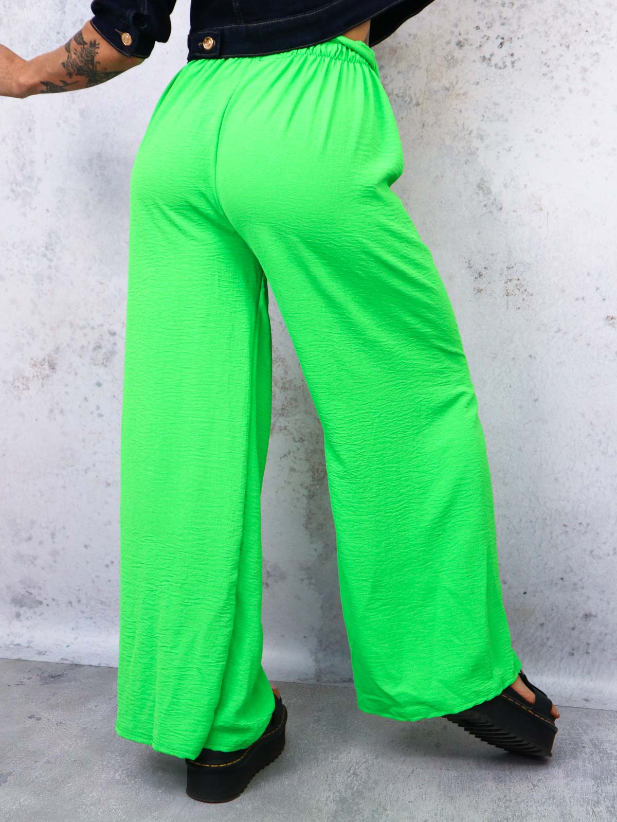 SPODNIE SZEROKIE Z GUMĄ I WIĄZANIEM W PASIE- ZIELONE