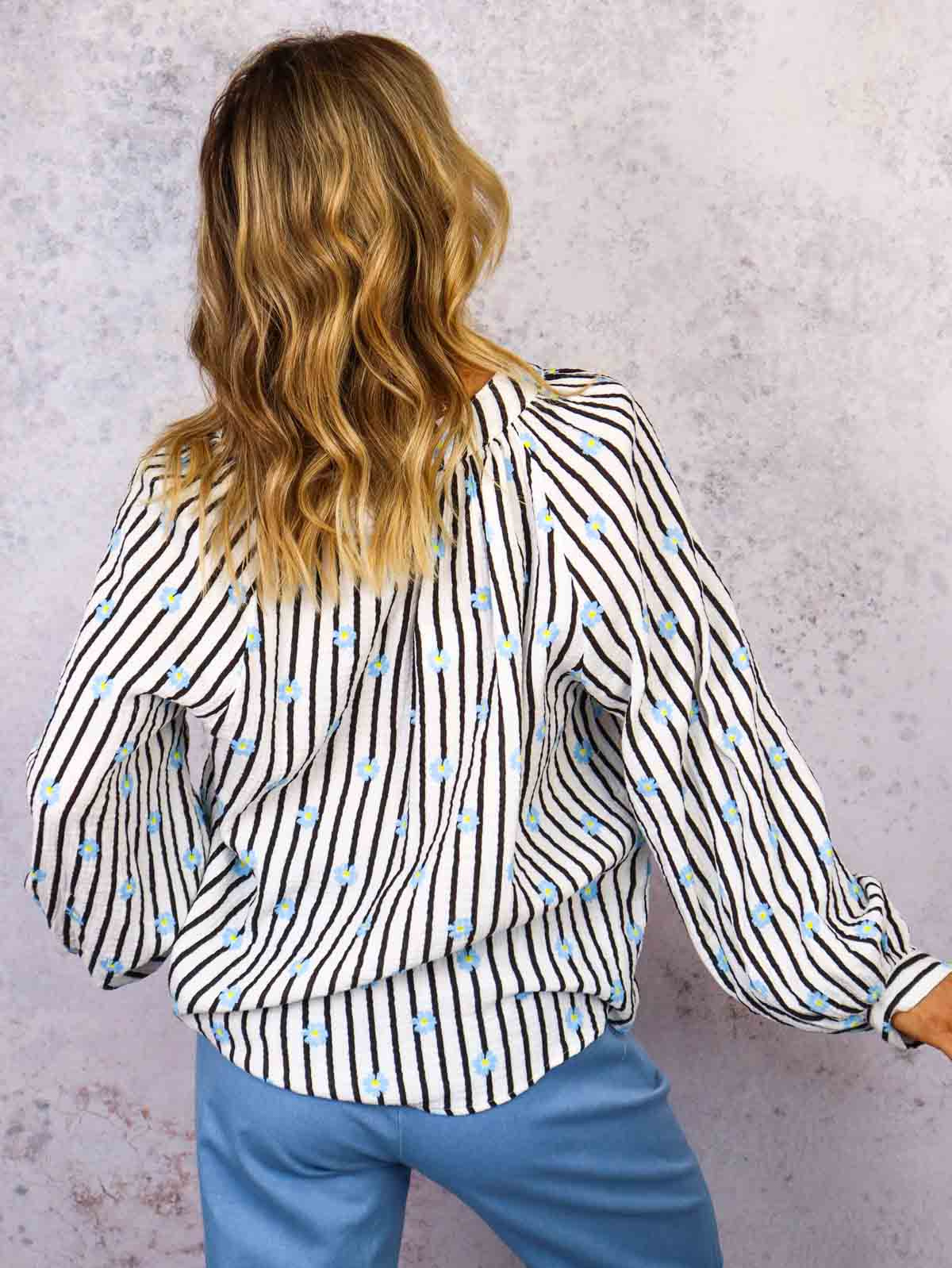 BLUZKA KOSZULOWA W PASKI I KWIATKI- CZARNA