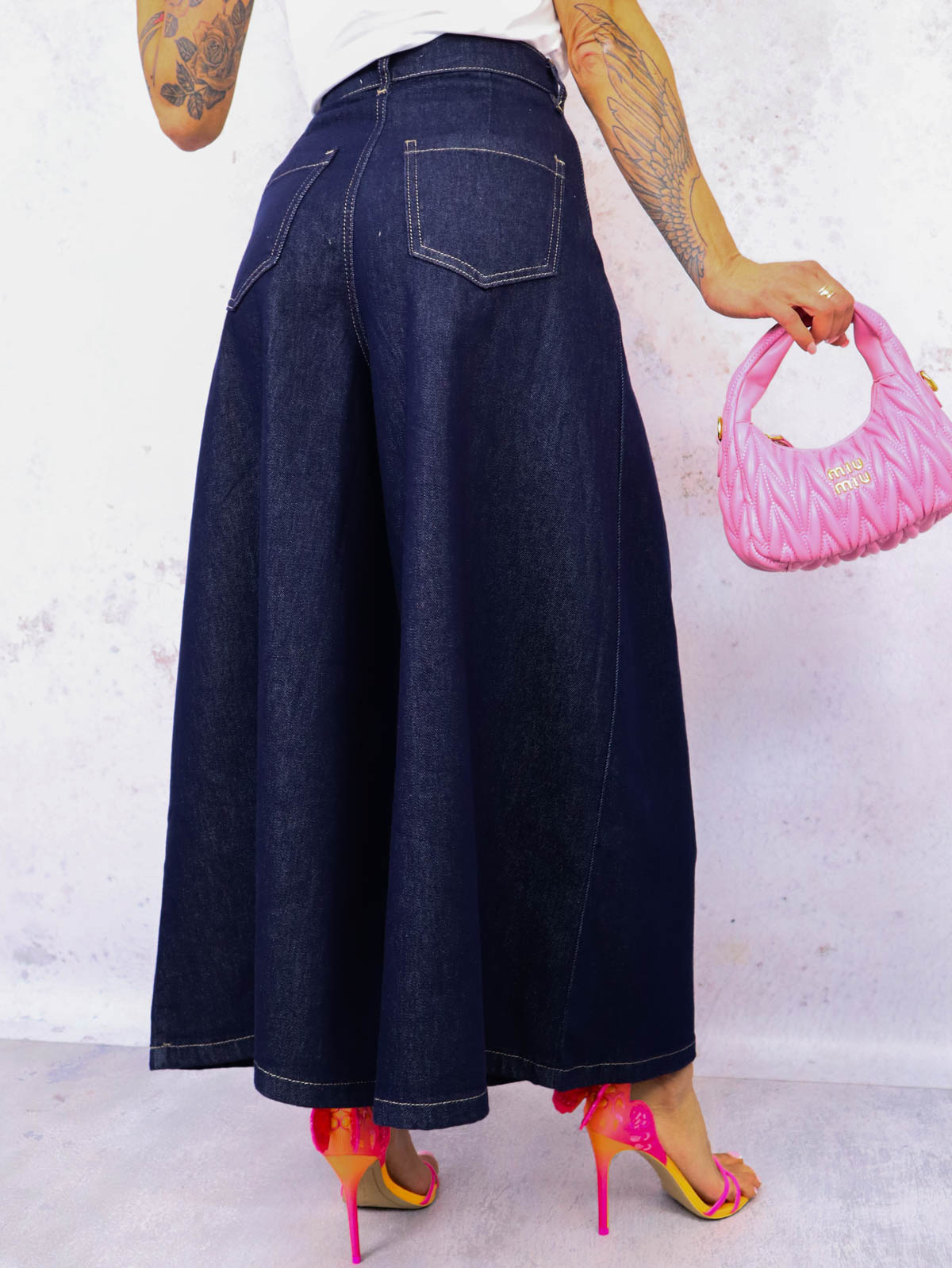 SPODNIE JEANSOWE Z BARDZO SZEROKIMI NOGAWKAMI- CIEMNY JEANS