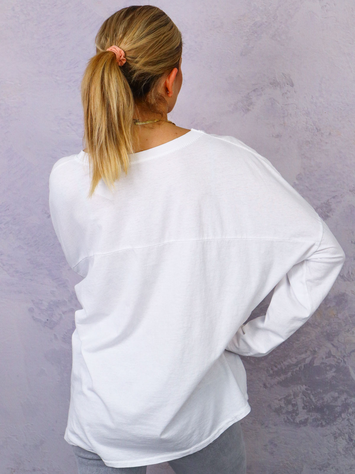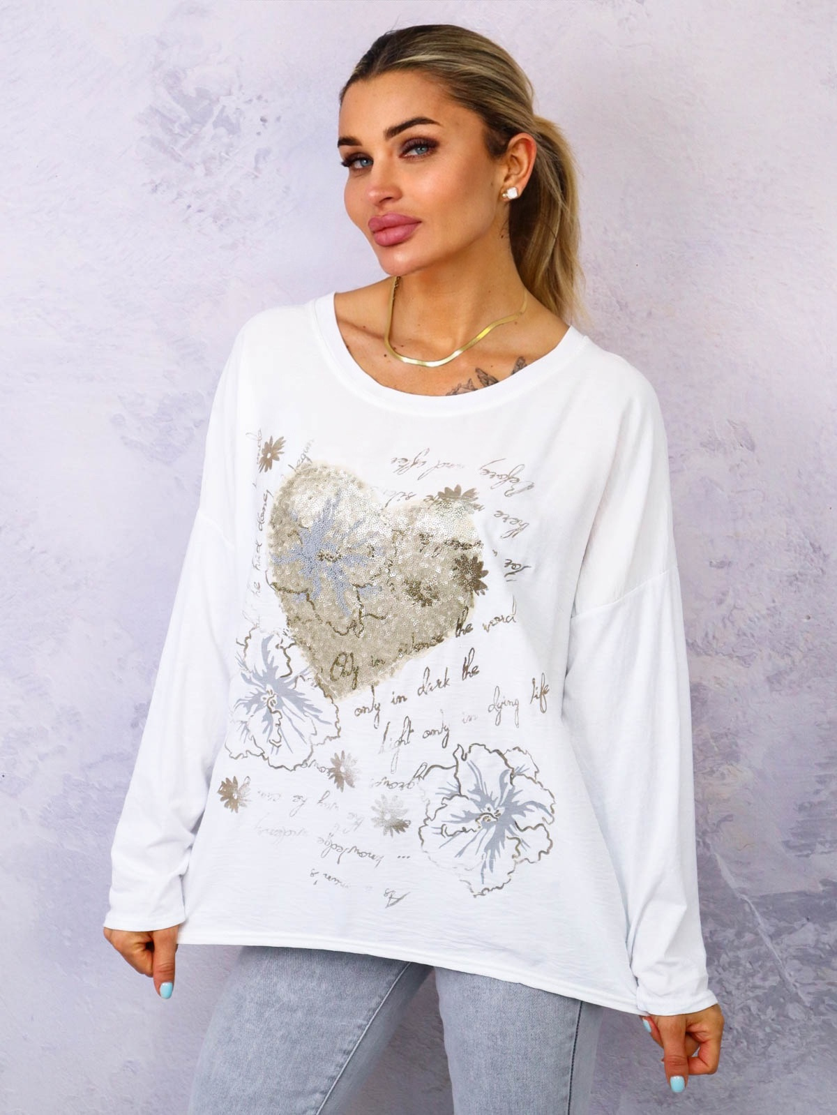 BLUZKA Z APLIKACJĄ I OZDOBNYMI CEKINAMI- BIAŁA