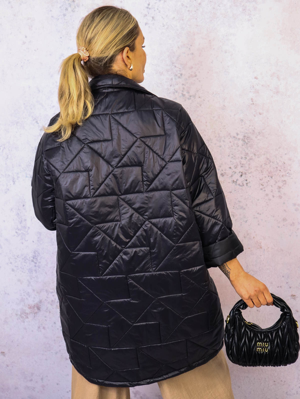 PIKOWANY PŁASZCZ ZAPINANY NA ZŁOTE GUZIKI- CZARNY