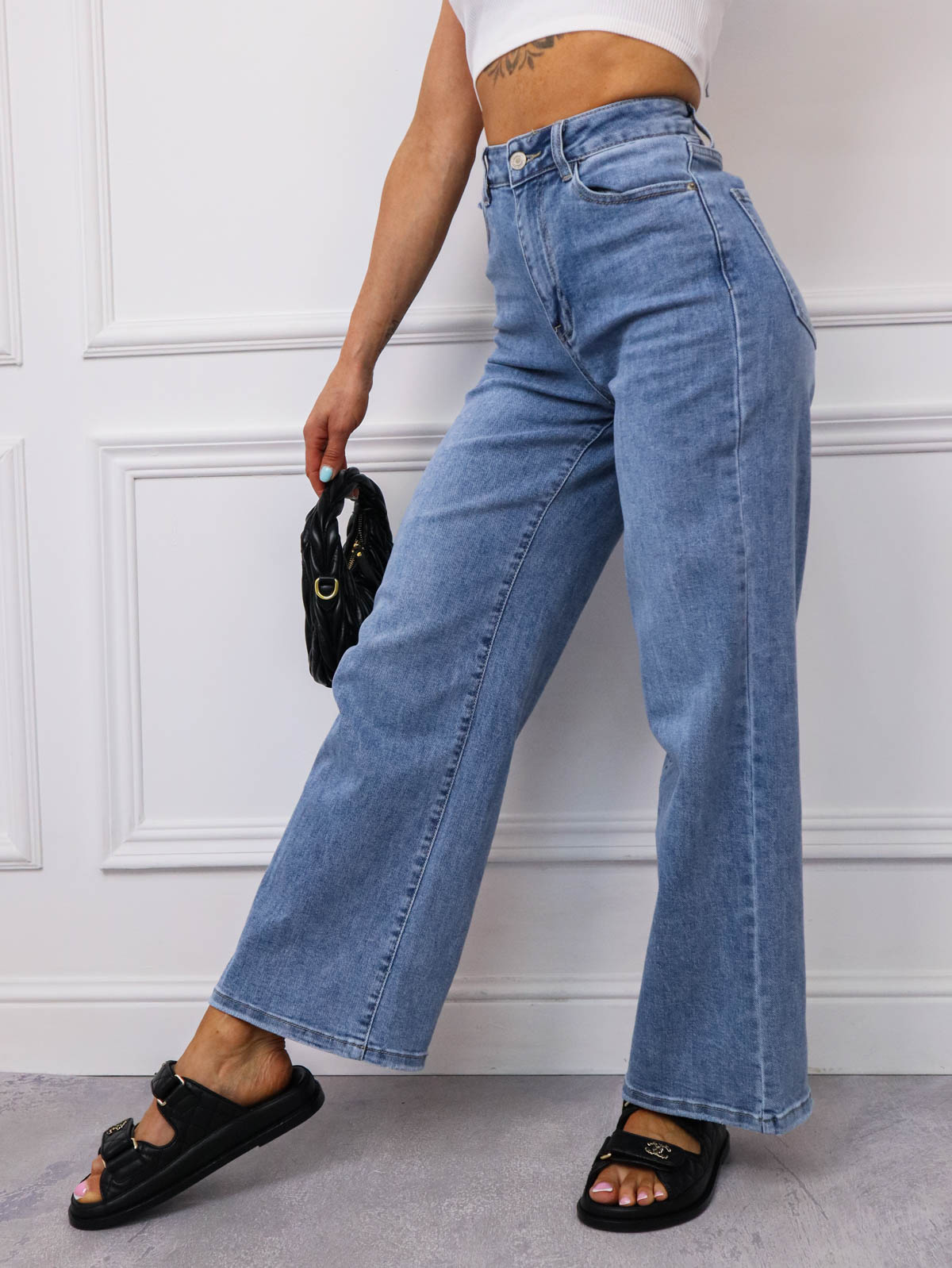 Spodnie jeansowe z wysokim stanem i szerokimi nogawkami.