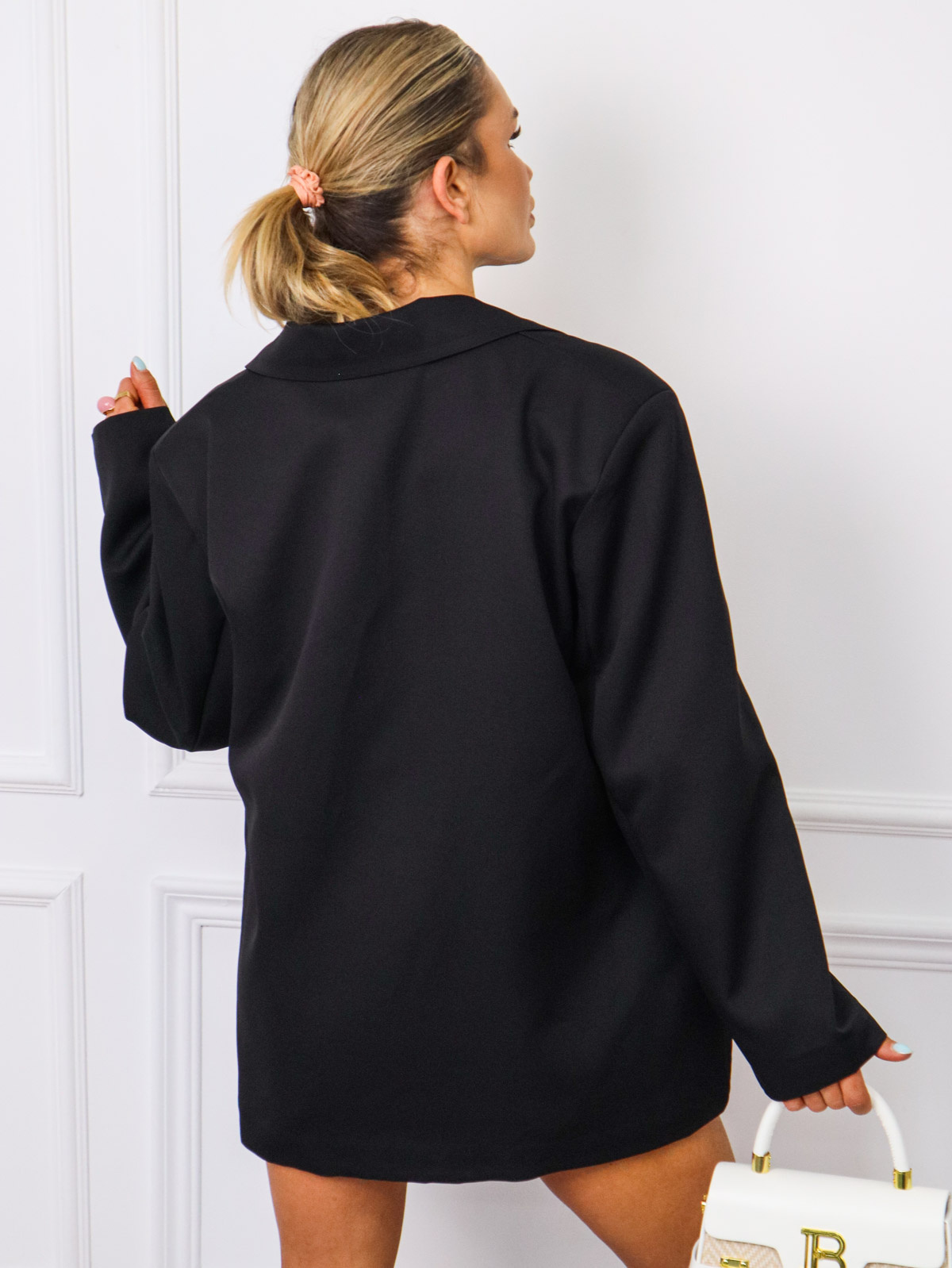 MARYNARKA OVERSIZE ZAPINANA NA GUZIKI- CZARNA