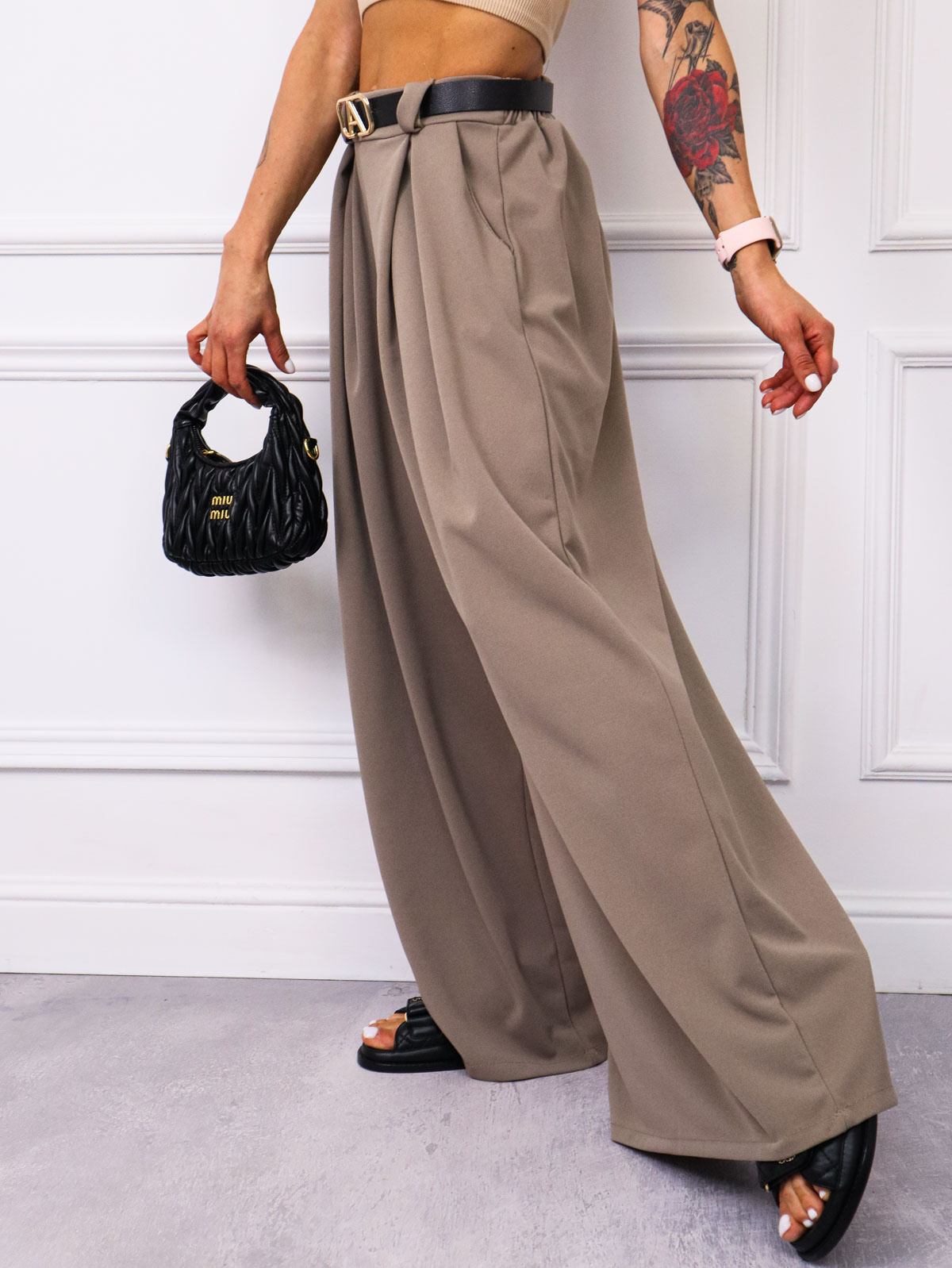 SPODNIE MATERIAŁOWE Z SZEROKIMI NOGAWKAMI+ PASEK- FANGO