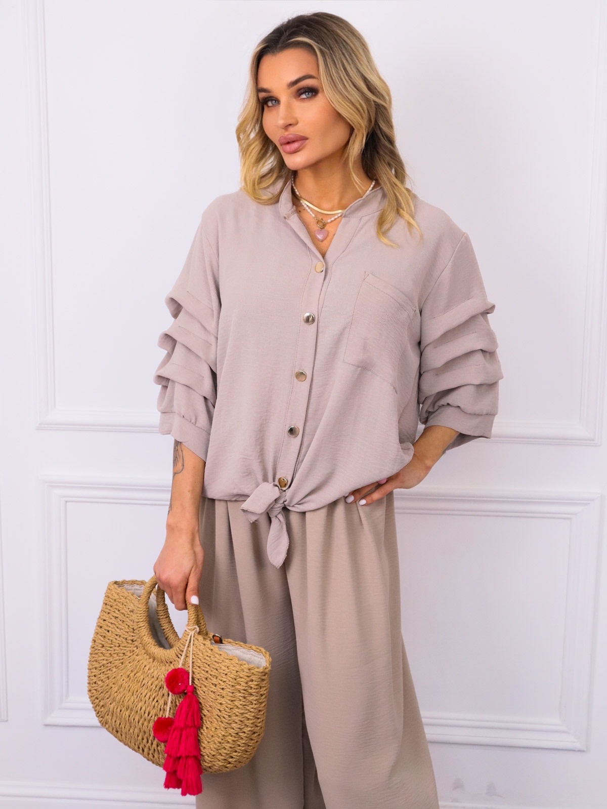 BLUZKA ZE ZŁOTYMI GUZIKAMI I RĘKAWEM FALBANĄ- FANGO