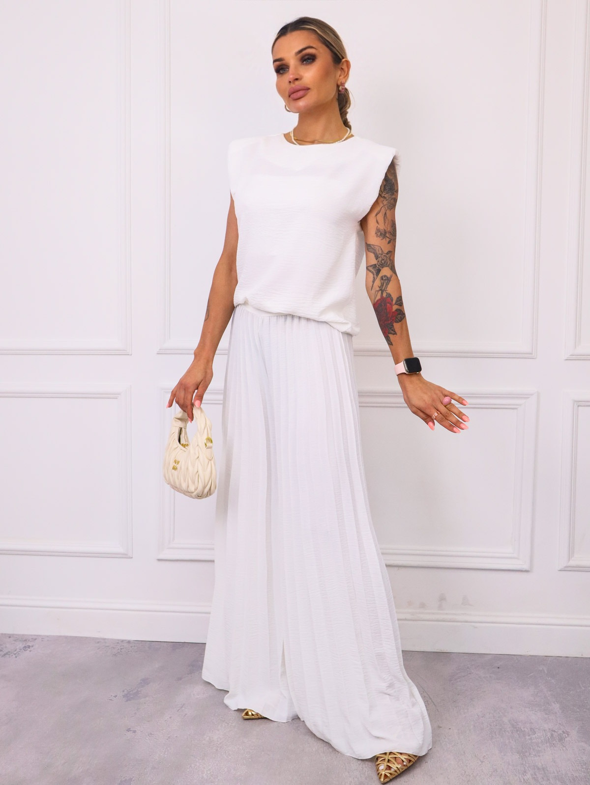 KOMPLET BLUZKA+ SZEROKIE PLISOWANE SPODNIE- BIAŁY