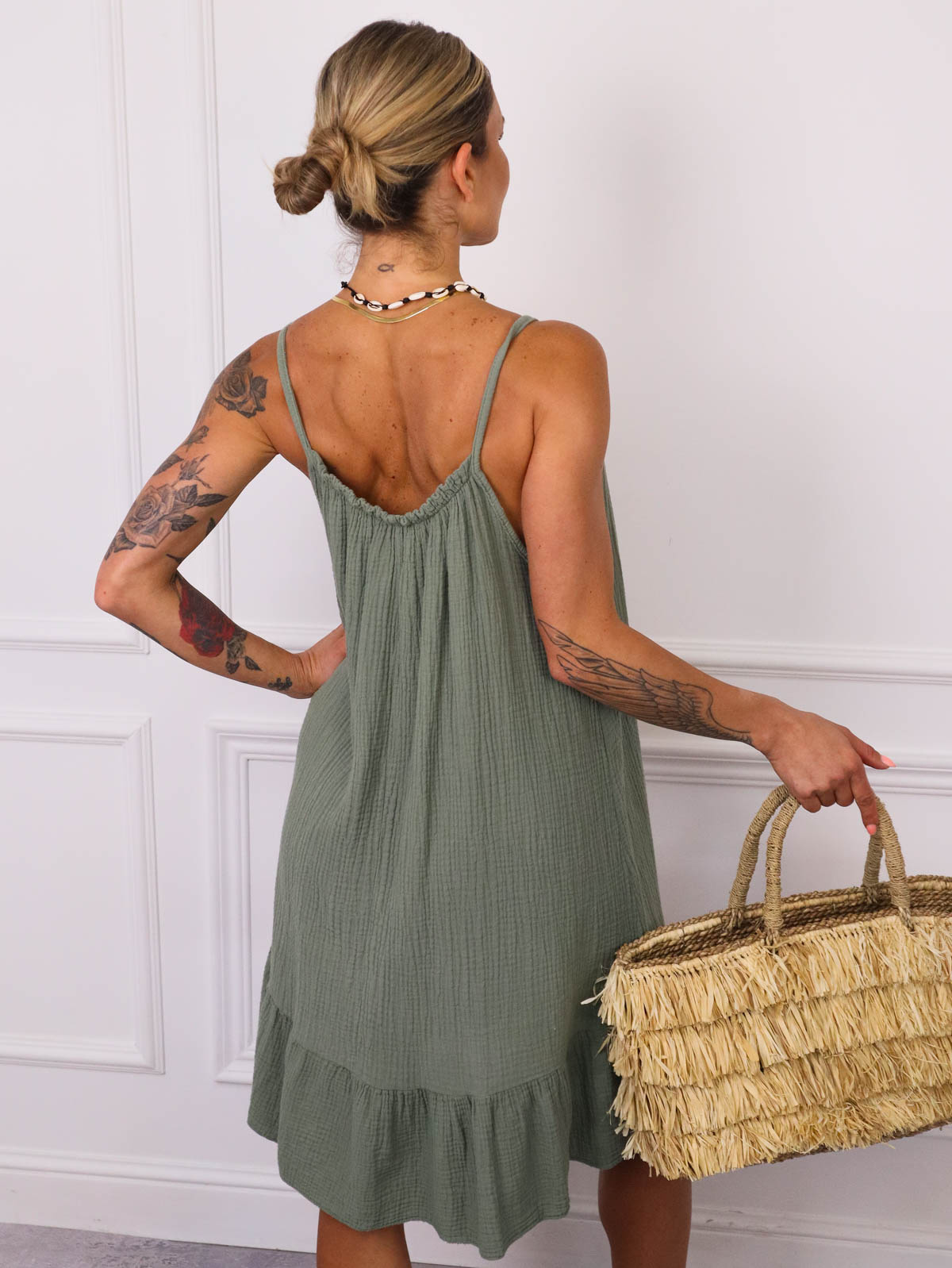 SUKIENKA MINI MUŚLNOWA NA RAMIĄCZKA Z FALBANĄ- ZIELONA